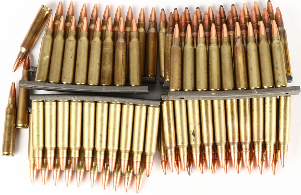 lot of 90 Rds. Of 5.56/.223 on clips, mix of Hollo point, soft point & FMJ. Grade: Excellent - Value: 40 to 80