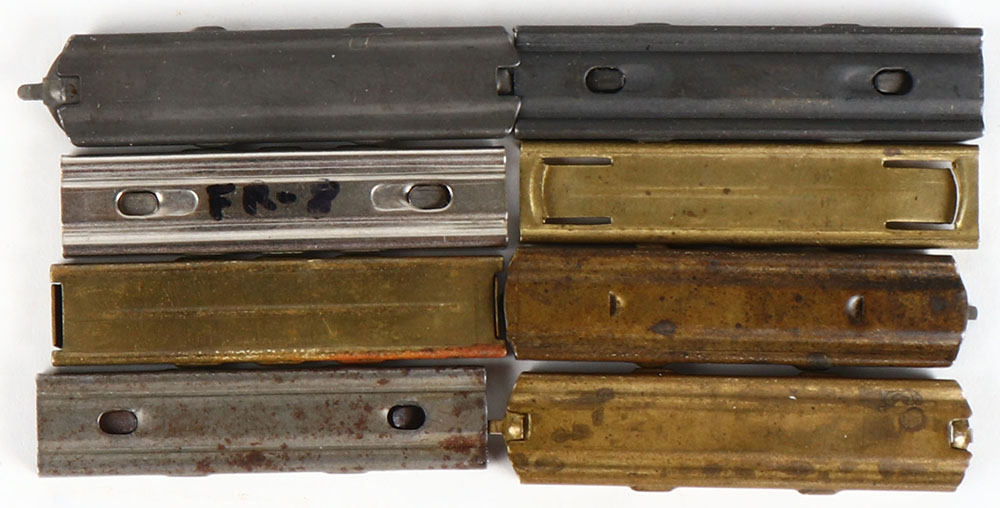 Lot of 8 various, Mauser style stripper clips for different cartridges, some US, some foreign. Grade: Very Good + - Value: 20 to 40