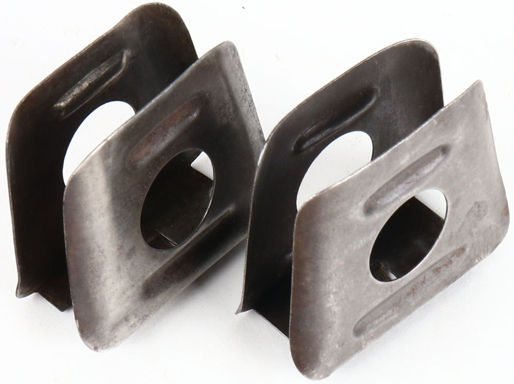 Lot of two, French 3 Rd. Berthier 8x50mmR Enbloc clips, one is a French original clip, one is a Santa Fe Reproduction. Grade: Very Good ++ - Value: 20 to 40