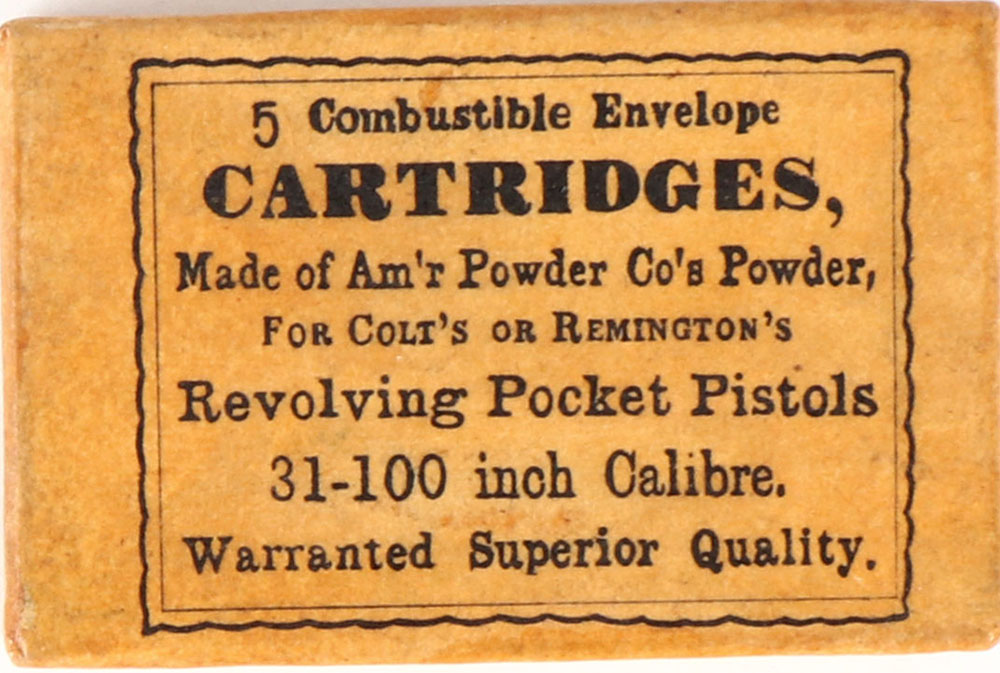 RARE! EARLY! Small 31-100 Cal combustible cart box, 5 count, Full & Sealed, very nice condition! Grade: Excellent ++ - Value: 100 to 500
