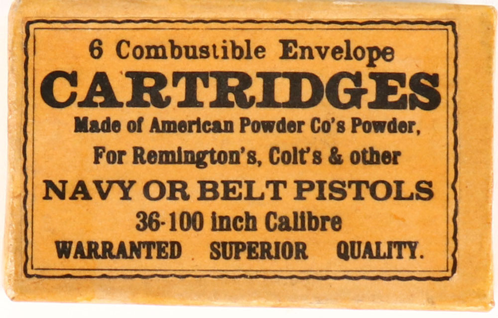 RARE! EARLY! Small 36-100 Cal combustible cart box, 5 count, Full & Sealed, very nice condition! Grade: Excellent ++ - Value: 100 to 500