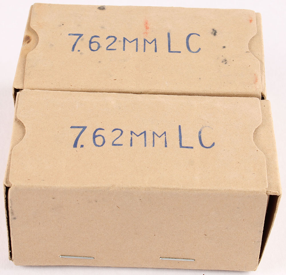 Lot of two, Chinese, 7.62mm (.30 Carbine) 50 Rd. Box's, both Full, ammo is excellent but is known to be Berdan primed & corrosive. Grade: Excellent - Value: 40 to 100