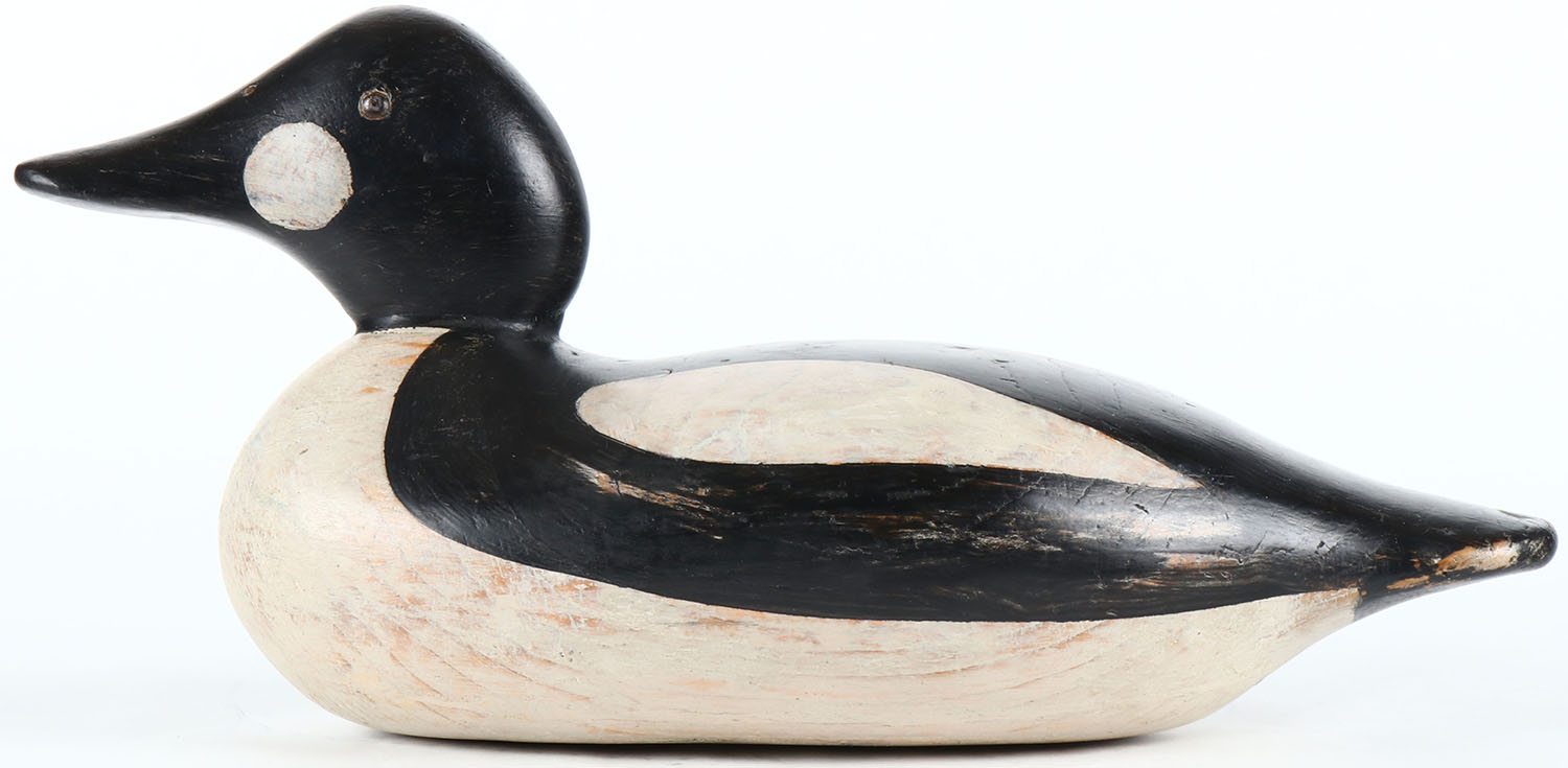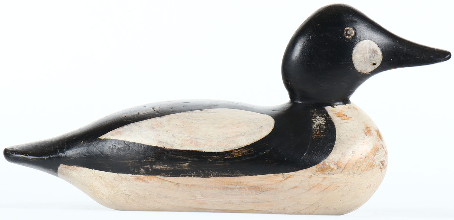 Tack-Eye Goldeneye Drake by Mason Decoy Company, Detroit, MI, 1896-1924. Solid wood, completely restored paint, structurally excellent. Grade: Excellent. Grade: Excellent - Value: 60 to 125