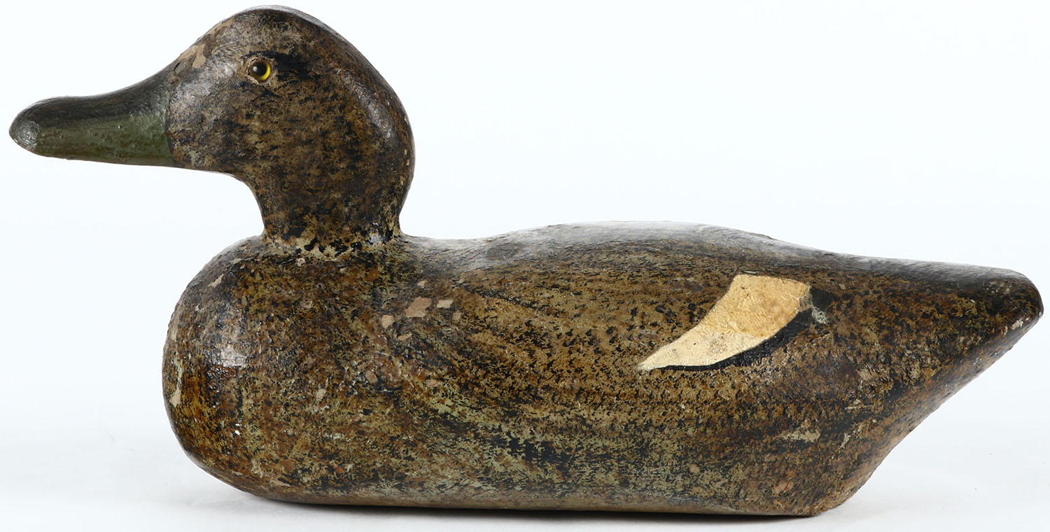 Pintail Hen unknown maker, glass eyes, solid wood, original paint, has age cracks on bottom. Grade: Very Good + - Value: 100 to 200