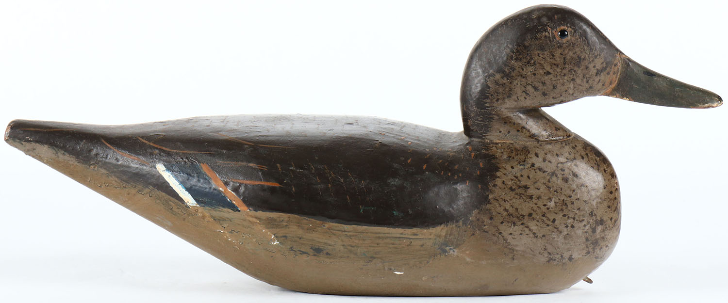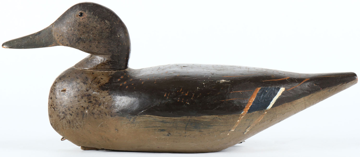 Pintail Hen by unknown maker, glass eyes, solid wood, original paint, structurally excellent. Grade: Excellent - Value: 60 to 120
