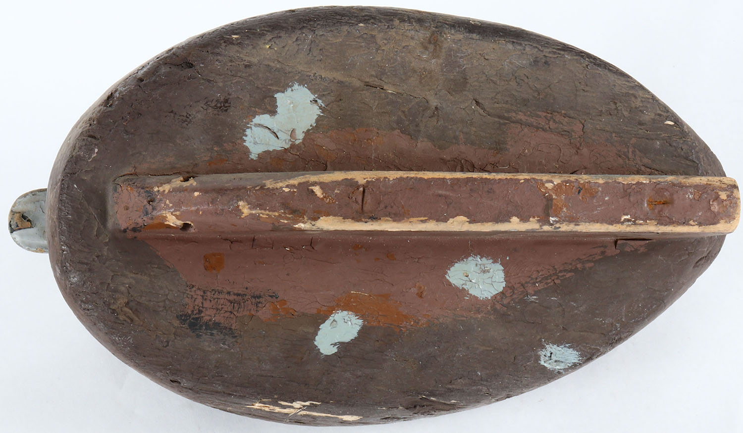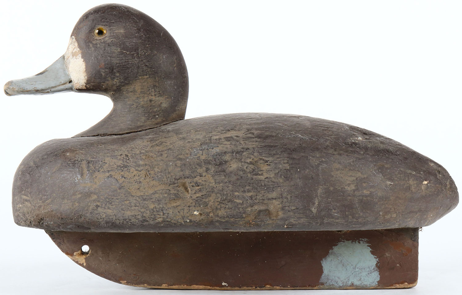 Bluebill Hen by unknown maker, glass eyes, solid balsa wood, old hunter repaint, structurally excellent. Grade: Very Good - Value: 40 to 80