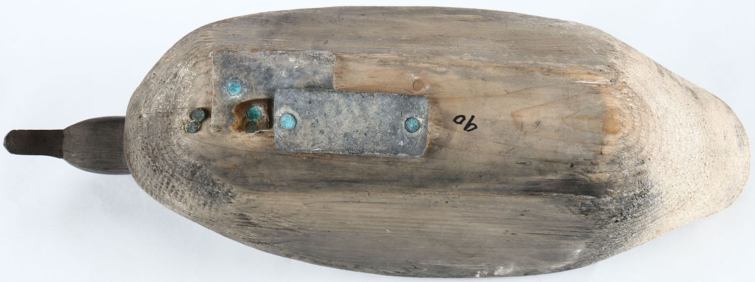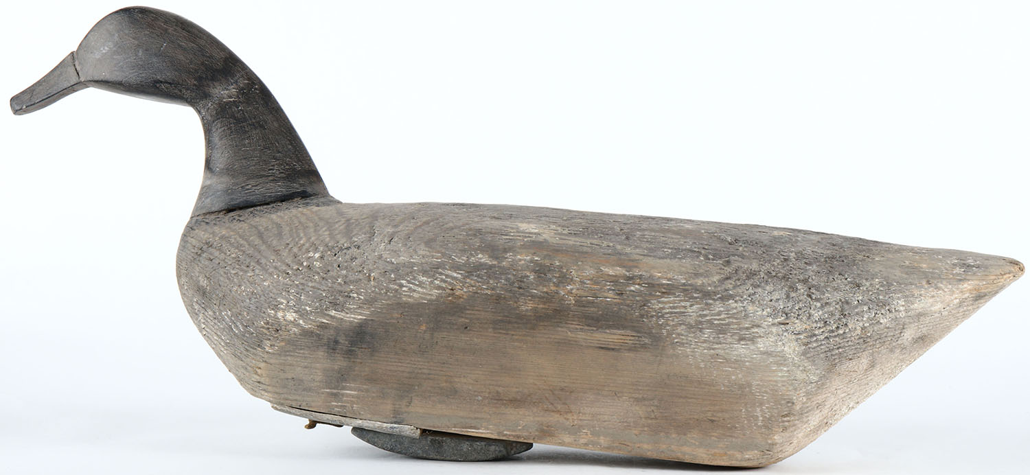Black Brant by unknown maker, no eyes, solid wood, original paint, has age cracks on back. Grade: Very Good + - Value: 200 to 400