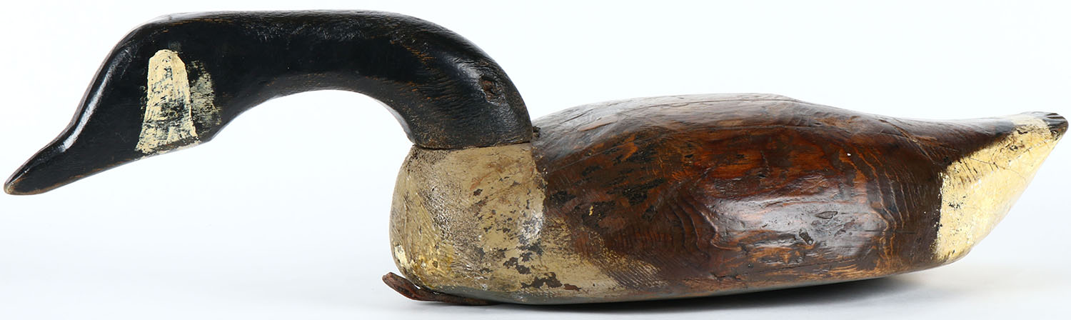 Canada Goose by unknown maker, painted eyes, hollow wood, combination of original and old hunter working repaint, structurally excellent. Grade: Excellent - Value: 100 to 150