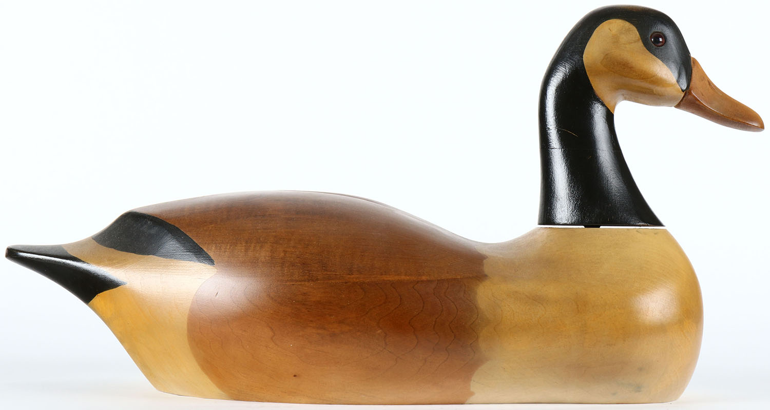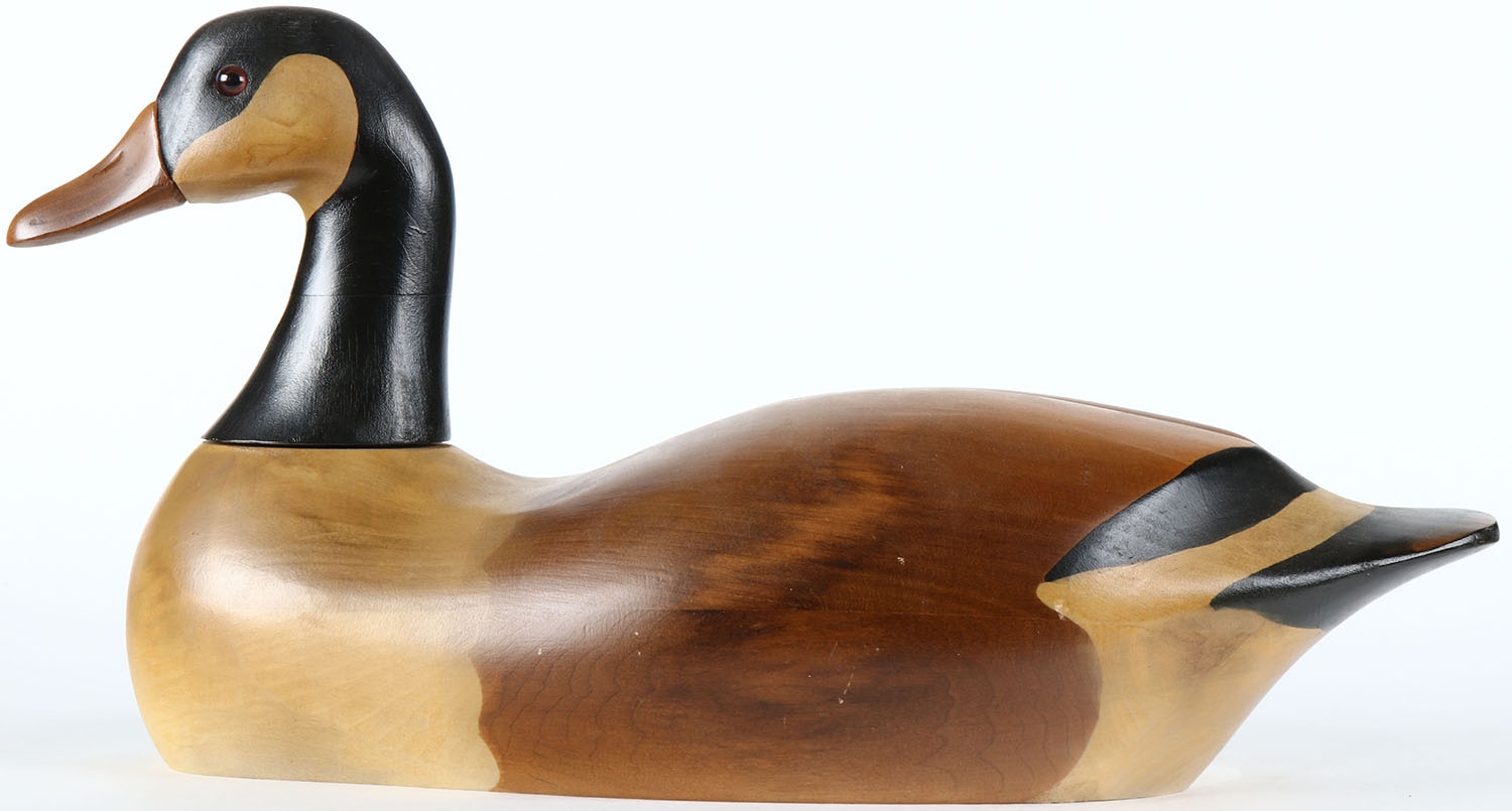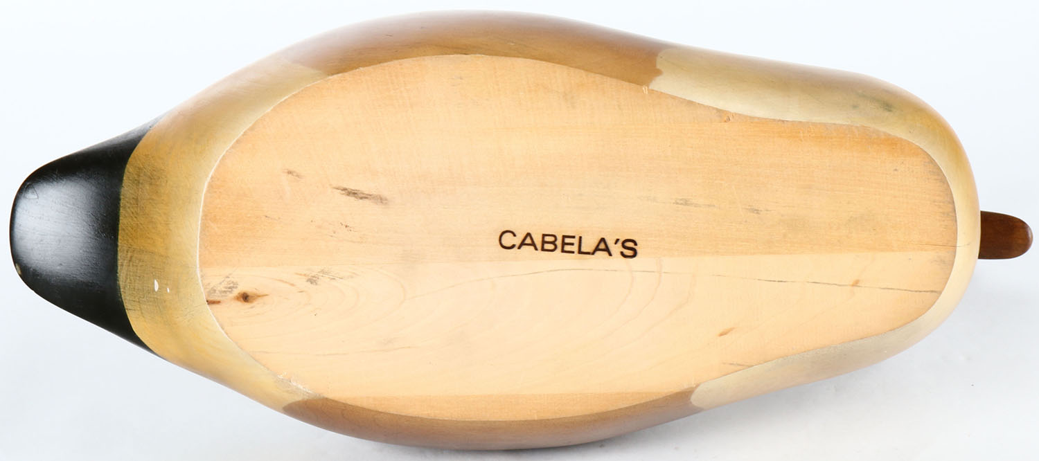 Canada Goose by Cabela's, glass eyes, solid wood, original paint, structurally excellent, branded CABELA'S on bottom. Grade: Excellent + - Value: 70 to 150
