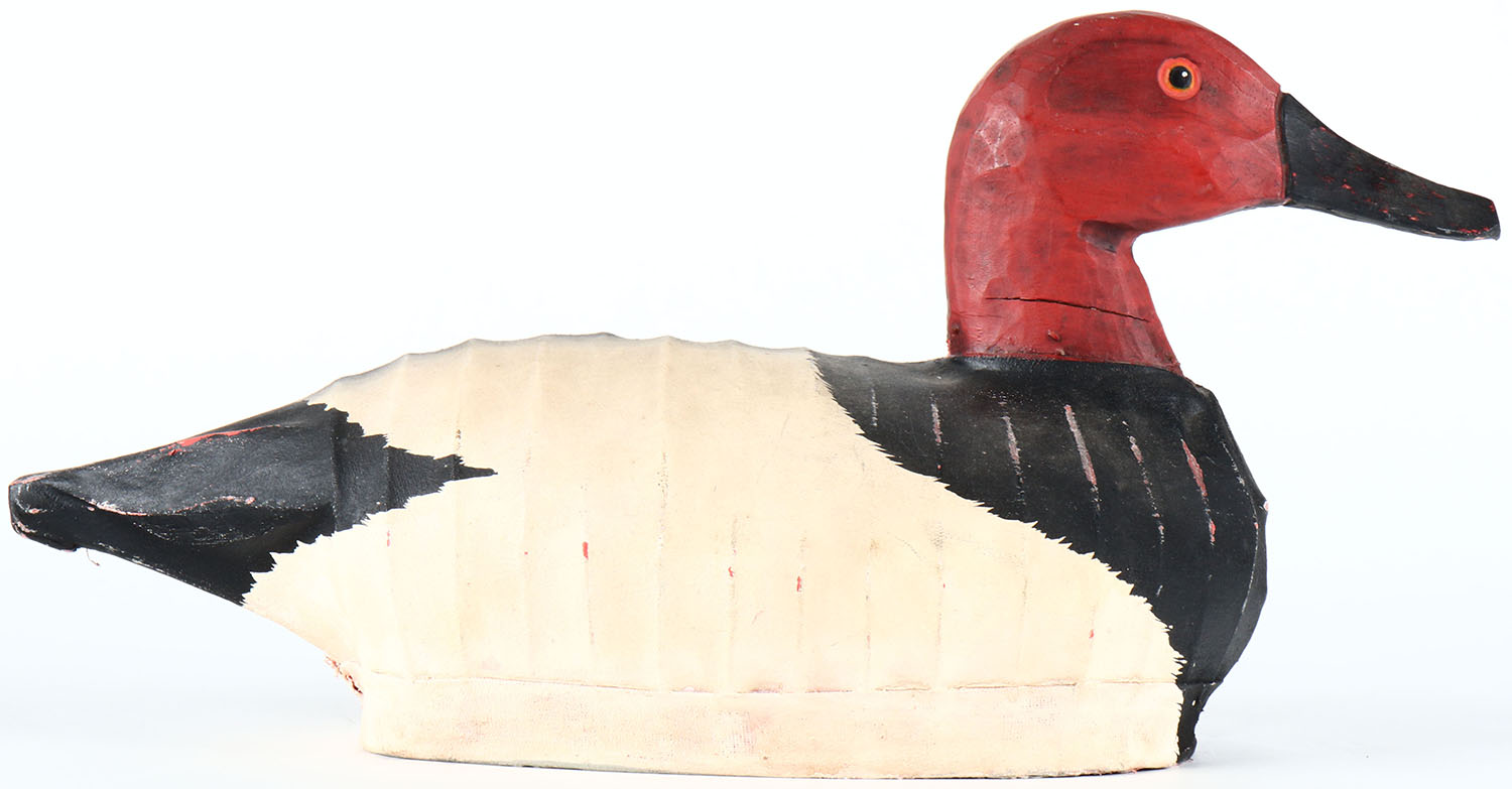 Canvasback Drake by unknown maker, painted eyes, canvas over wire, repainted, structurally excellent. Grade: Very Good ++ - Value: 26 to 50