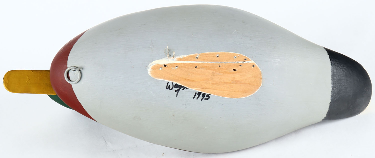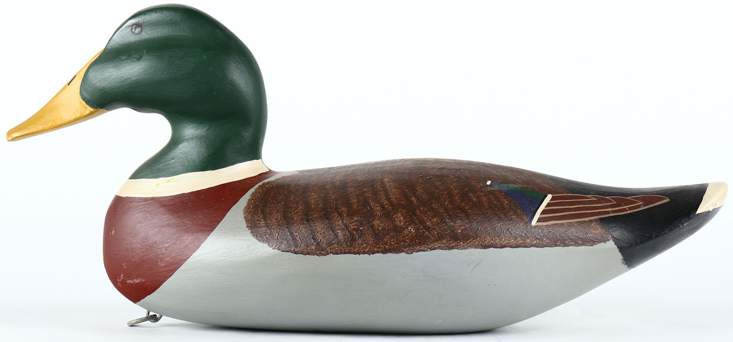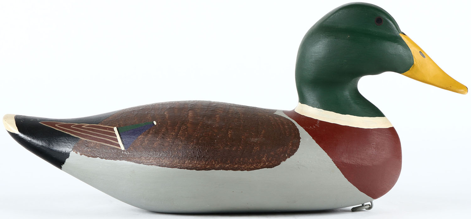 Mallard Drake by unknown maker, painted eyes, solid wood, original paint, structurally excellent. Grade: Excellent ++ - Value: 40 to 80
