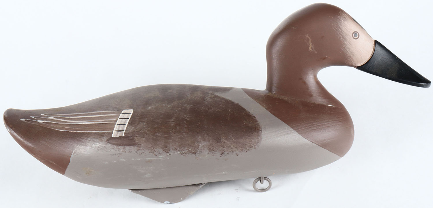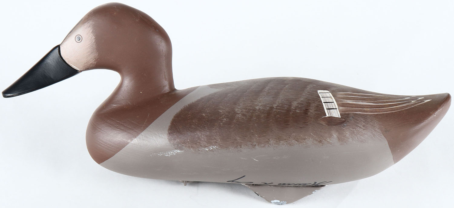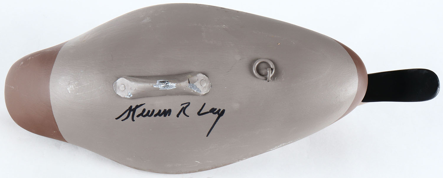 Canvasback Hen by Kevin R Lay, Havre De Grace, MD, painted eyes, solid wood, original paint, structurally excellent, signed on bottom. Grade: MINT - Value: 50 to 100