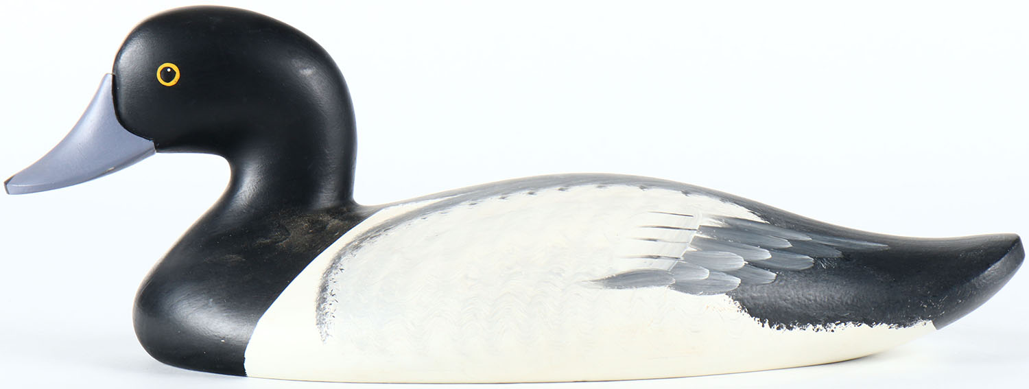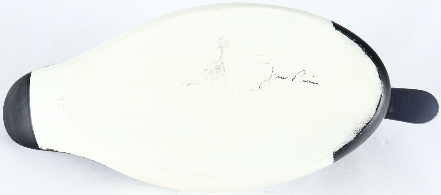 Bluebill Drake by Jim Pierce, Havre de Grace, MD, painted eyes, solid wood, original paint, structurally excellent, signed on bottom. Grade: MINT - Value: 50 to 100