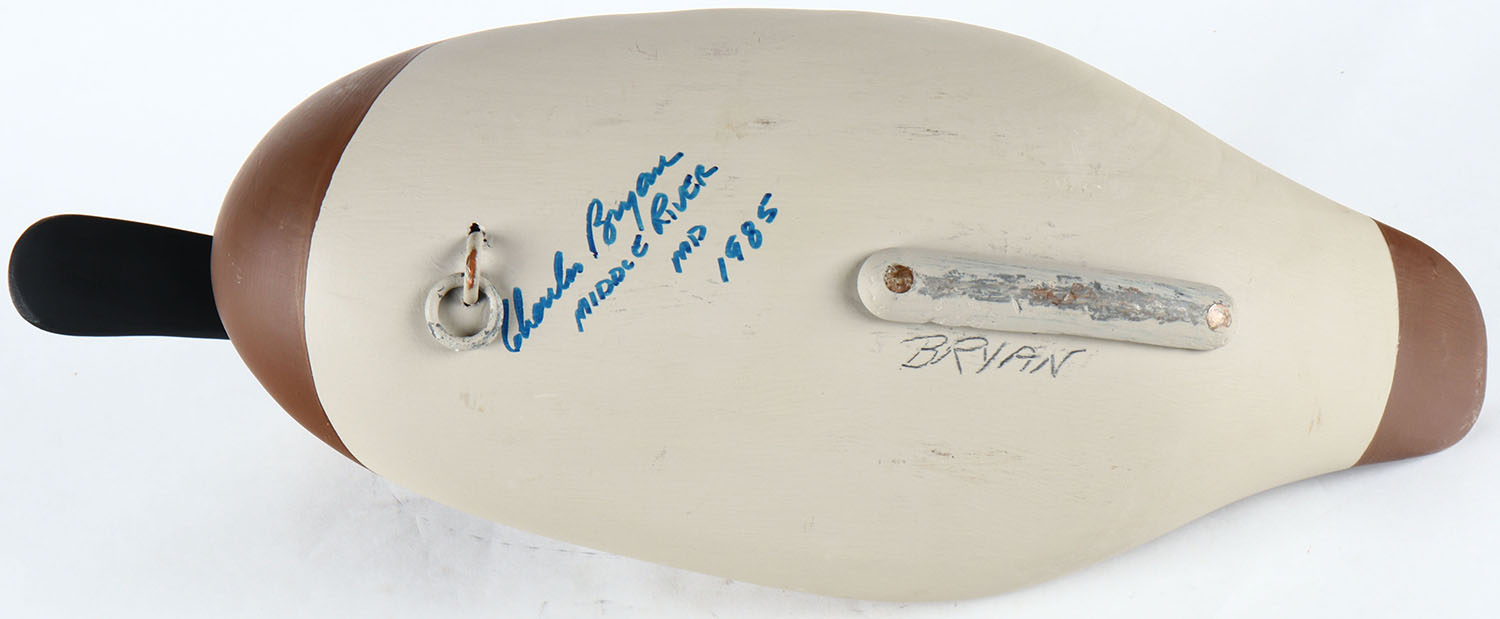 Canvasback Hen by Charles Bryan, Middle River, MD. Painted eyes, solid wood, original paint, structurally excellent, signed on bottom. Grade MINT - Value: 150 to 250