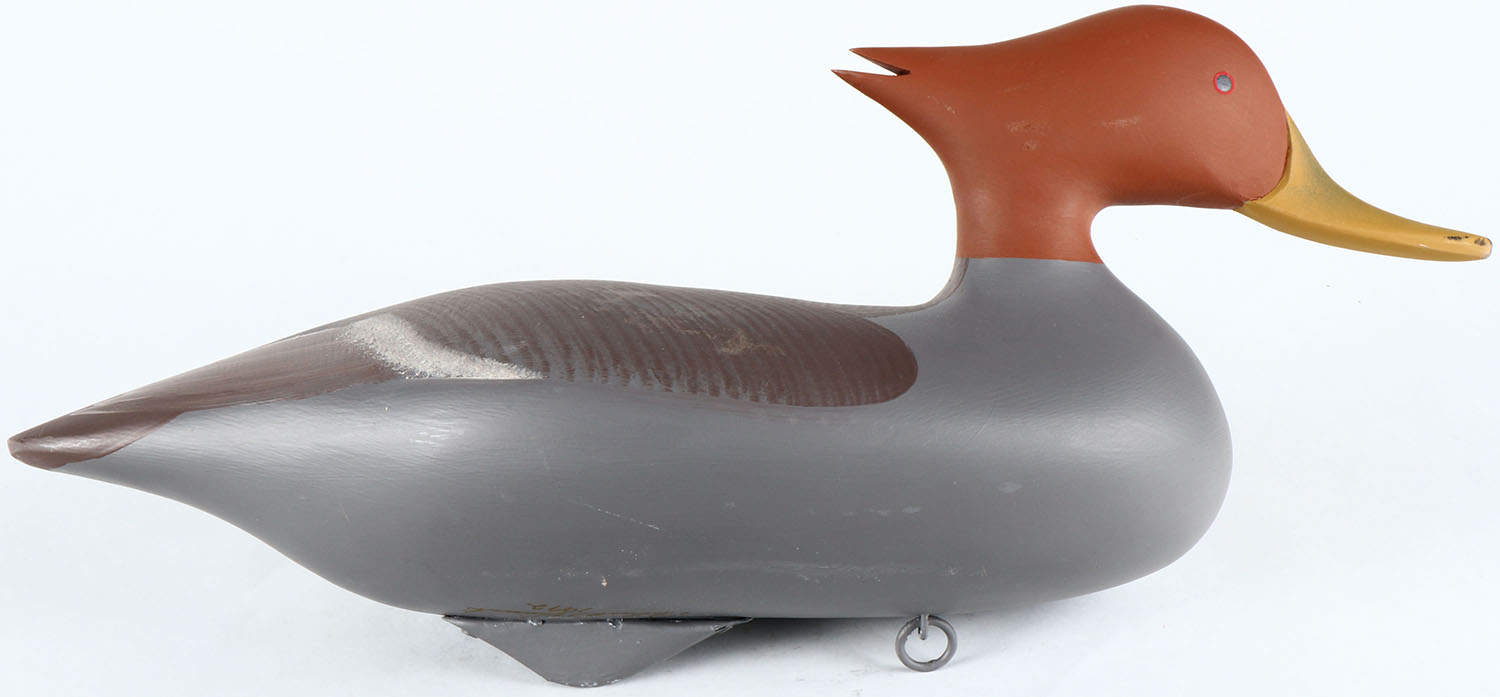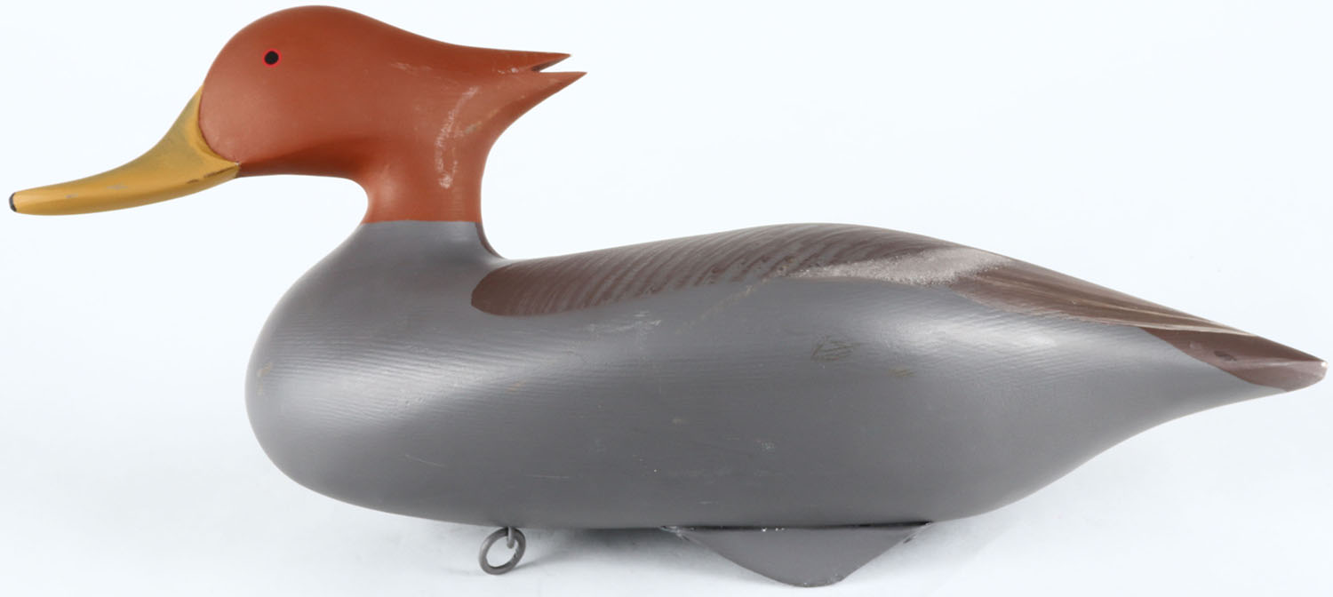 Hooded Merganser by Patrick ''Pat'' Vincent, Churchville, MD, painted eyes, solid wood, original paint, structurally excellent, signed on bottom. Grade: Excellent ++ - Value: 50 to 100