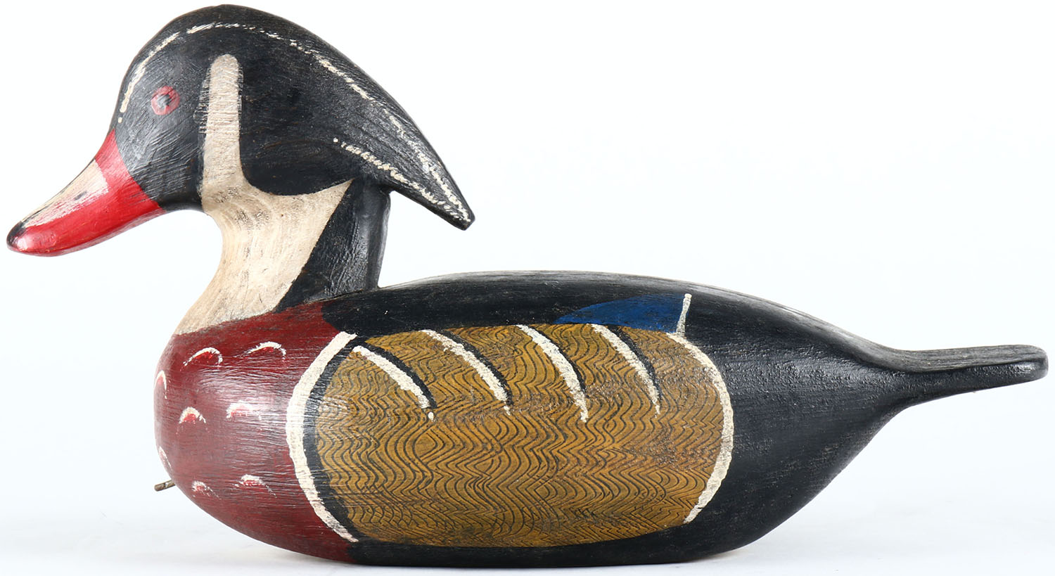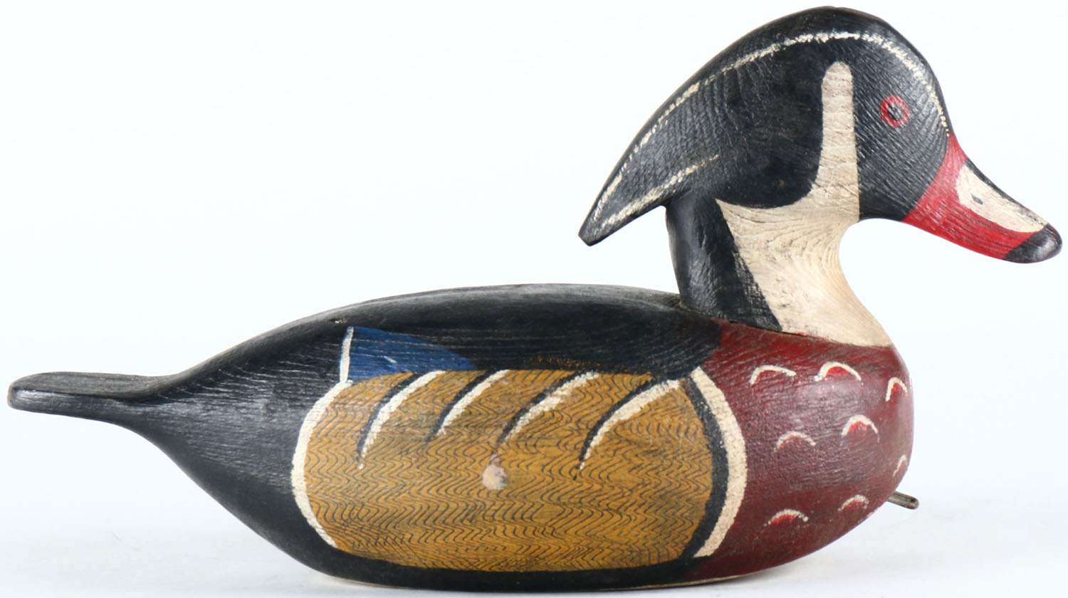Woodduck Drake by Bob Booth, Chincoteague Island, VA. Painted eyes, hollow wood, original paint, structurally excellent, signed on bottom. Grade: Excellent - Value: 70 to 150