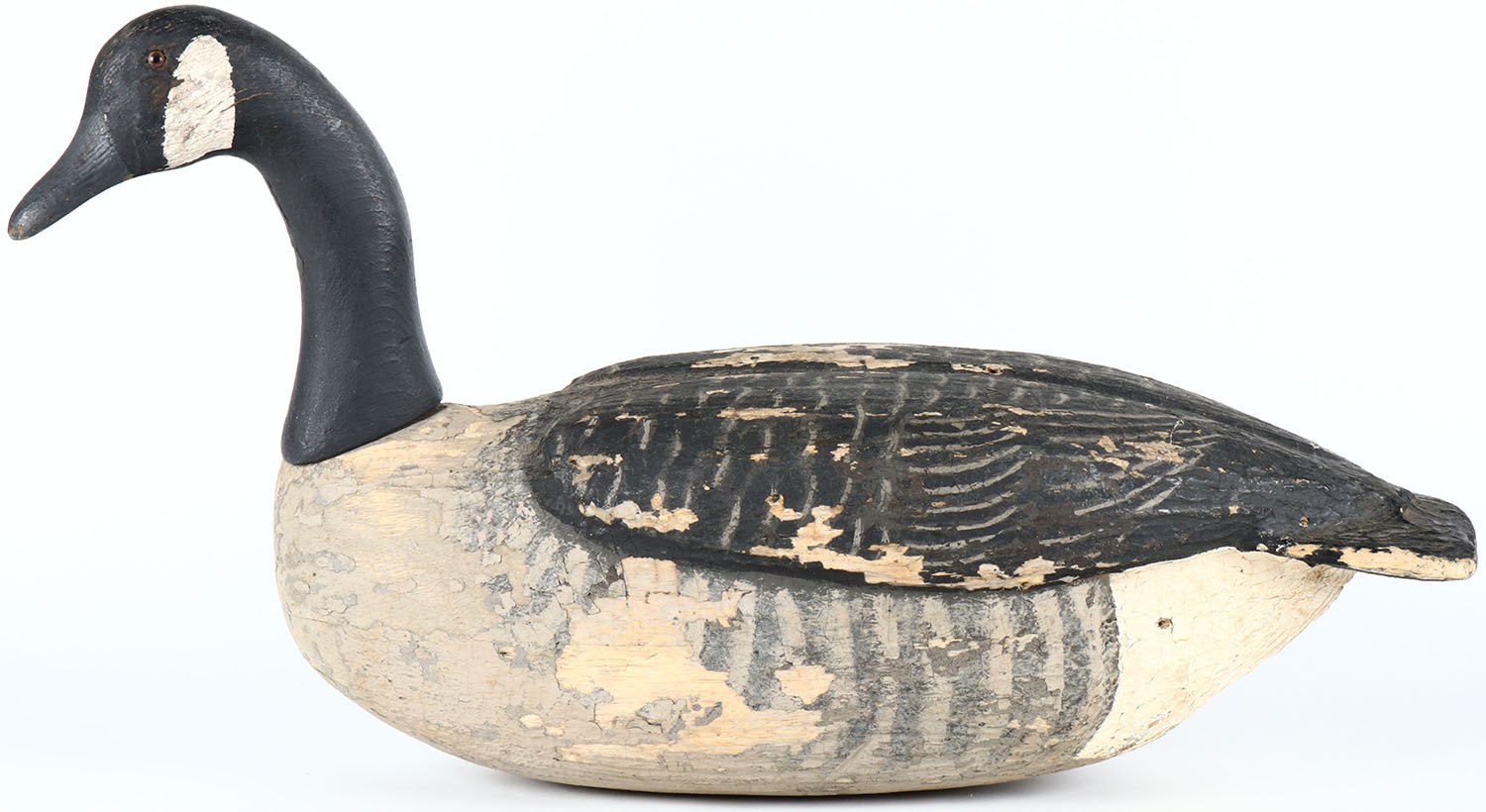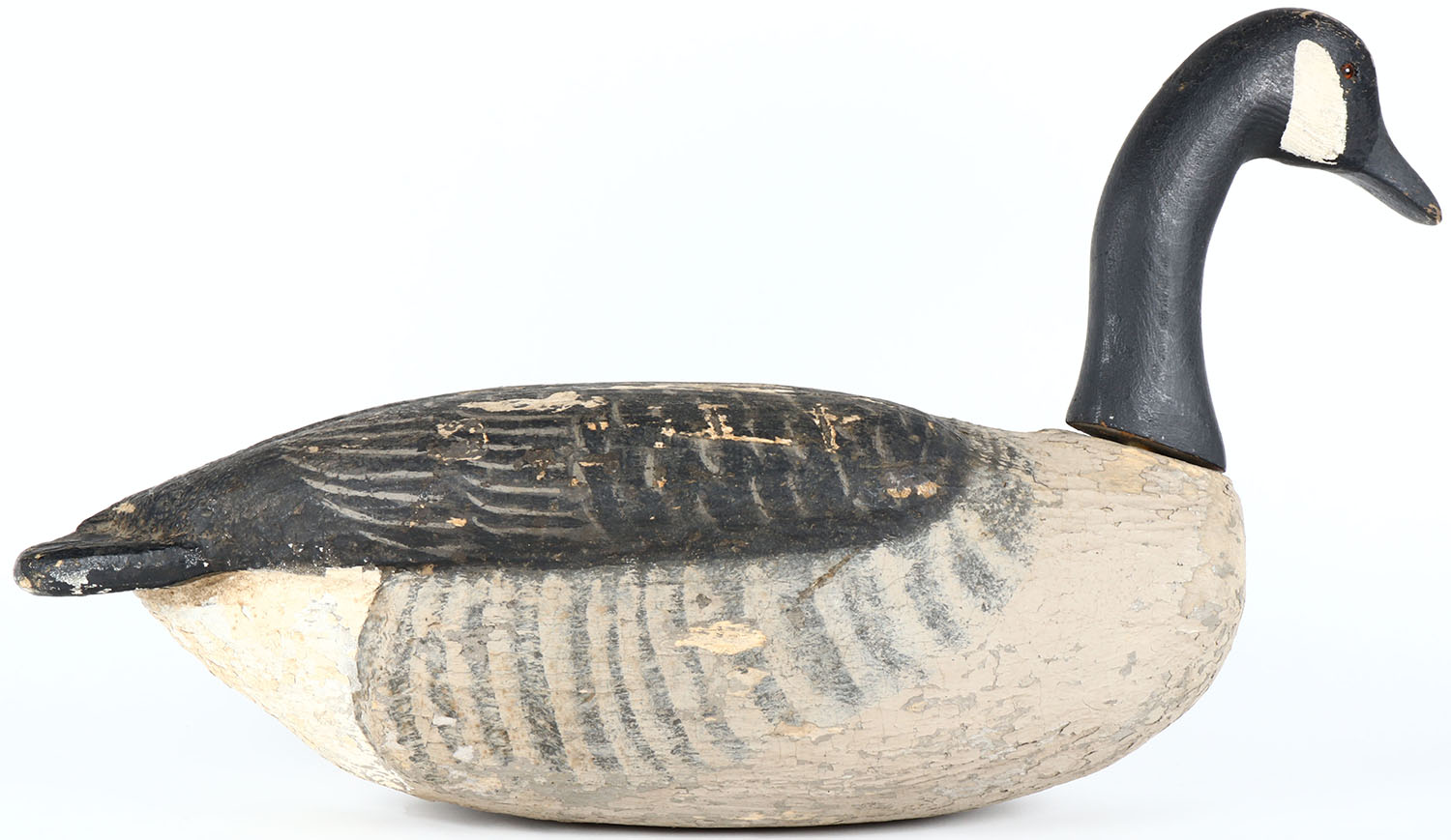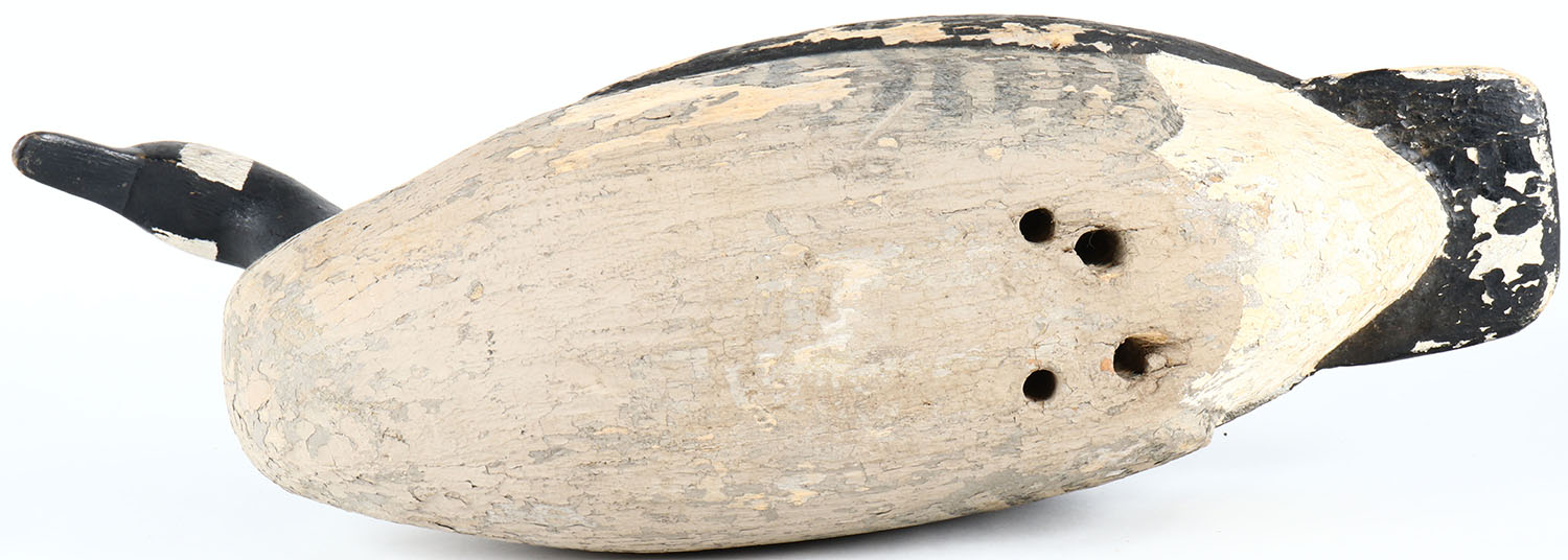 Canada Goose Field Decoy by Herter, Waseca, MN, glass eyes, solid balsa wood, old hunter repaint with typical wear. Grade: Good - Value: 30 to 60