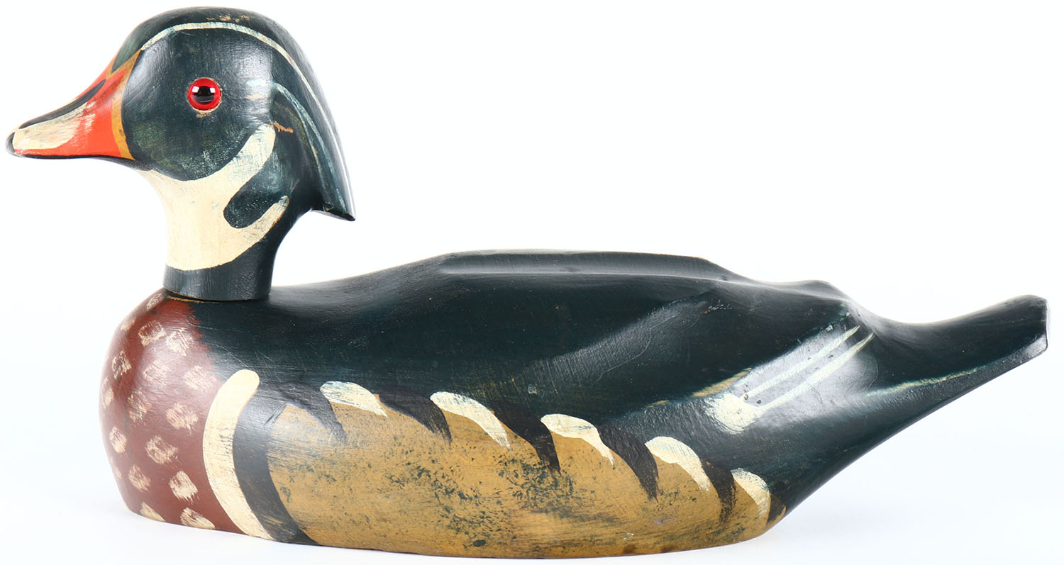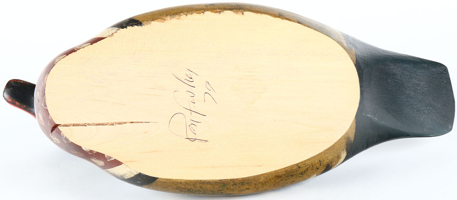 Woodduck Drake by unknown carver even though the bottom is signed by them, glass eyes, solid wood, original paint, structurally excellent. Grade: Excellent - Value: 40 to 80
