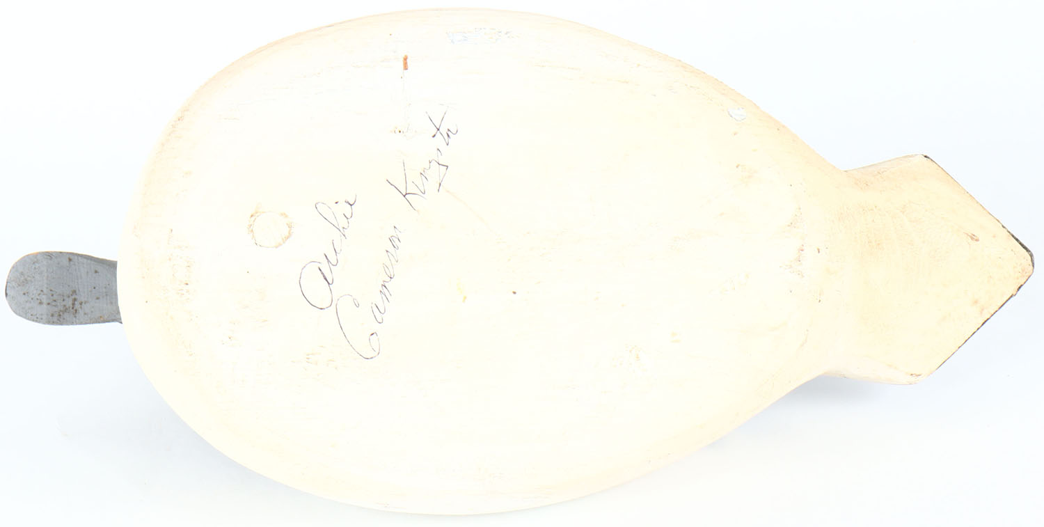 Goldeneye Drake by Archie Cameron Kingston, glass eyes, solid wood, original paint, structurally excellent, signed on bottom. Grade: Excellent - Value: 40 to 80