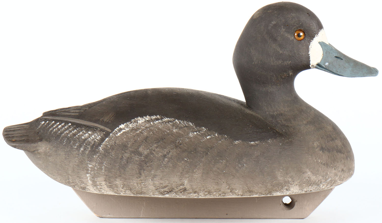 Bluebill Hen by Marv Meyer, WI, glass eyes, hollow wood, original paint, structurally excellent. Grade: