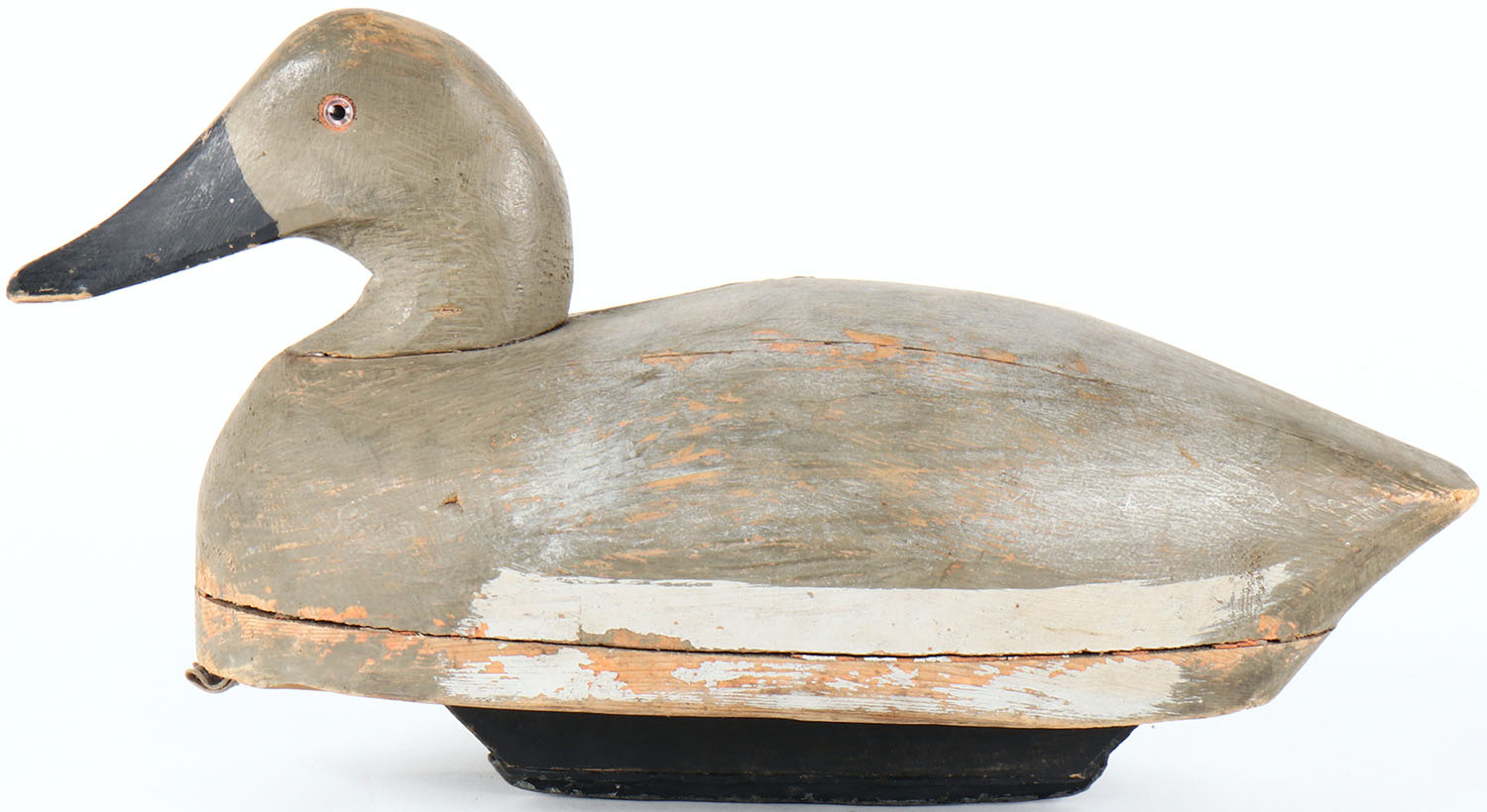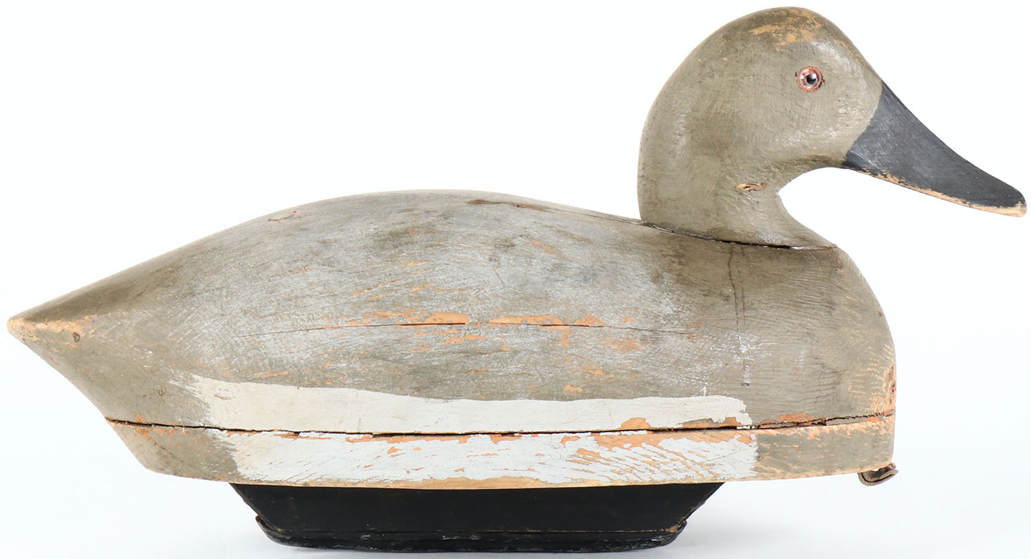 Canvasback Hen by unknown maker, glass eyes, solid wood, original paint, has age cracks on back. Grade: Very Good ++ - Value: 40 to 80