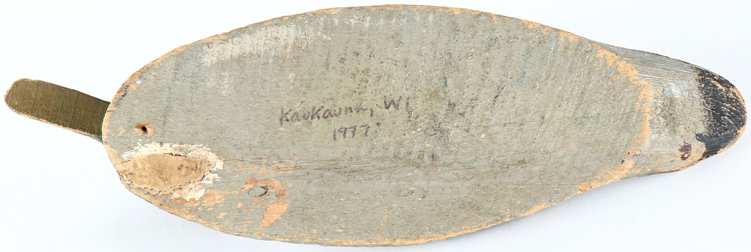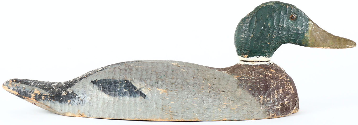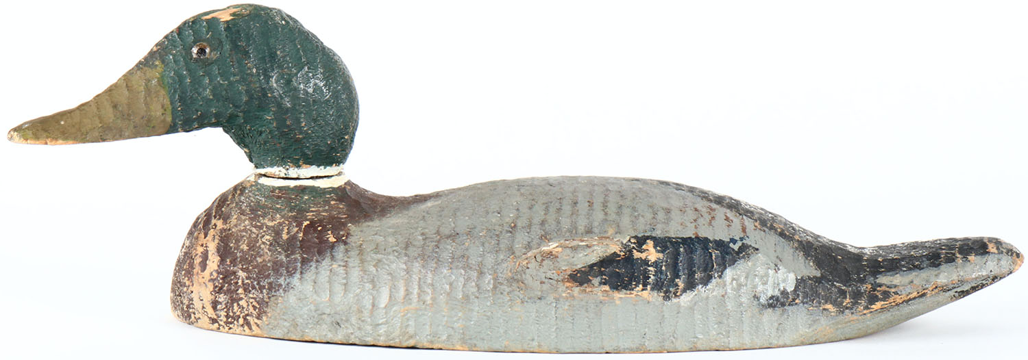 Mallard Drake by Pascagoula, MS factory, glass eyes, solid wood, original paint, head is loose. Grade: Very Good - Value: 20 to 40