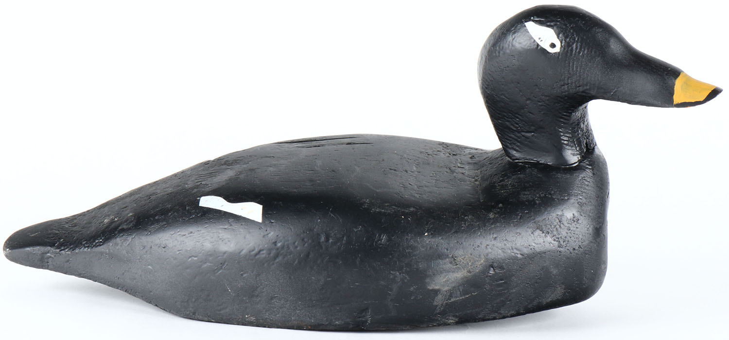 Scoter by unknown maker, painted eyes, solid wood, original paint, structurally excellent. Grade: Excellent - Value: 20 to 40