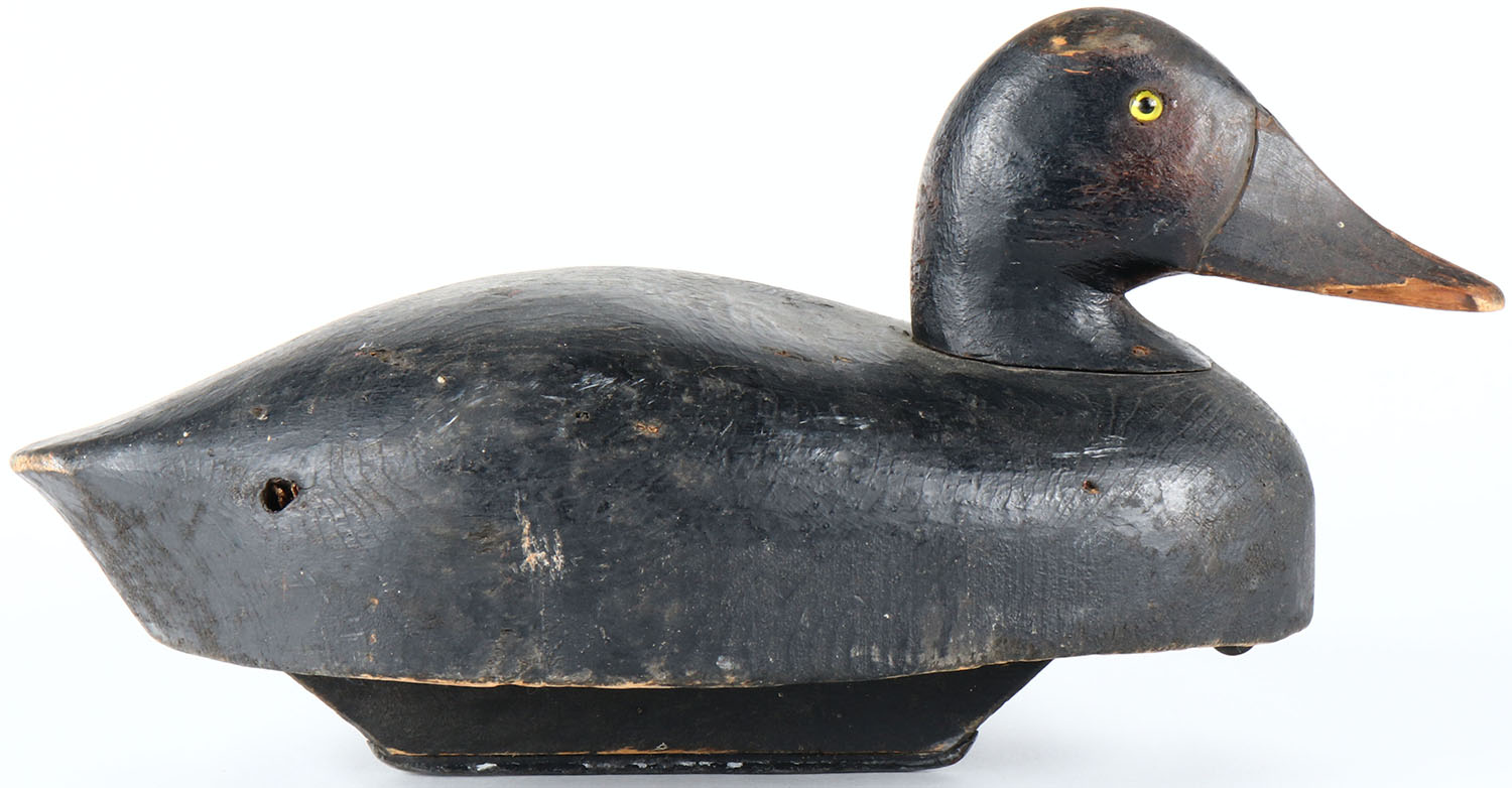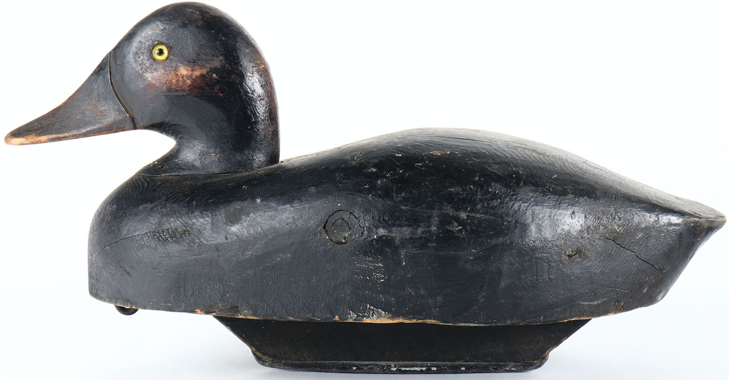 Canvasback Drake by unknown maker, glass eyes, solid wood, old hunter working paint strengthening, structurally excellent. Grade: Very Good + - Value: 40 to 80