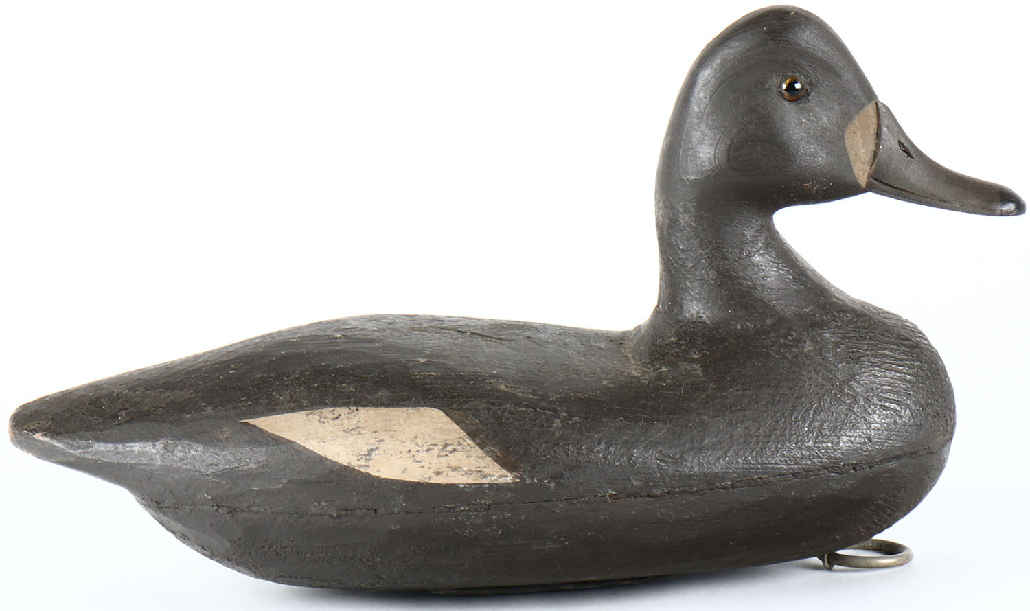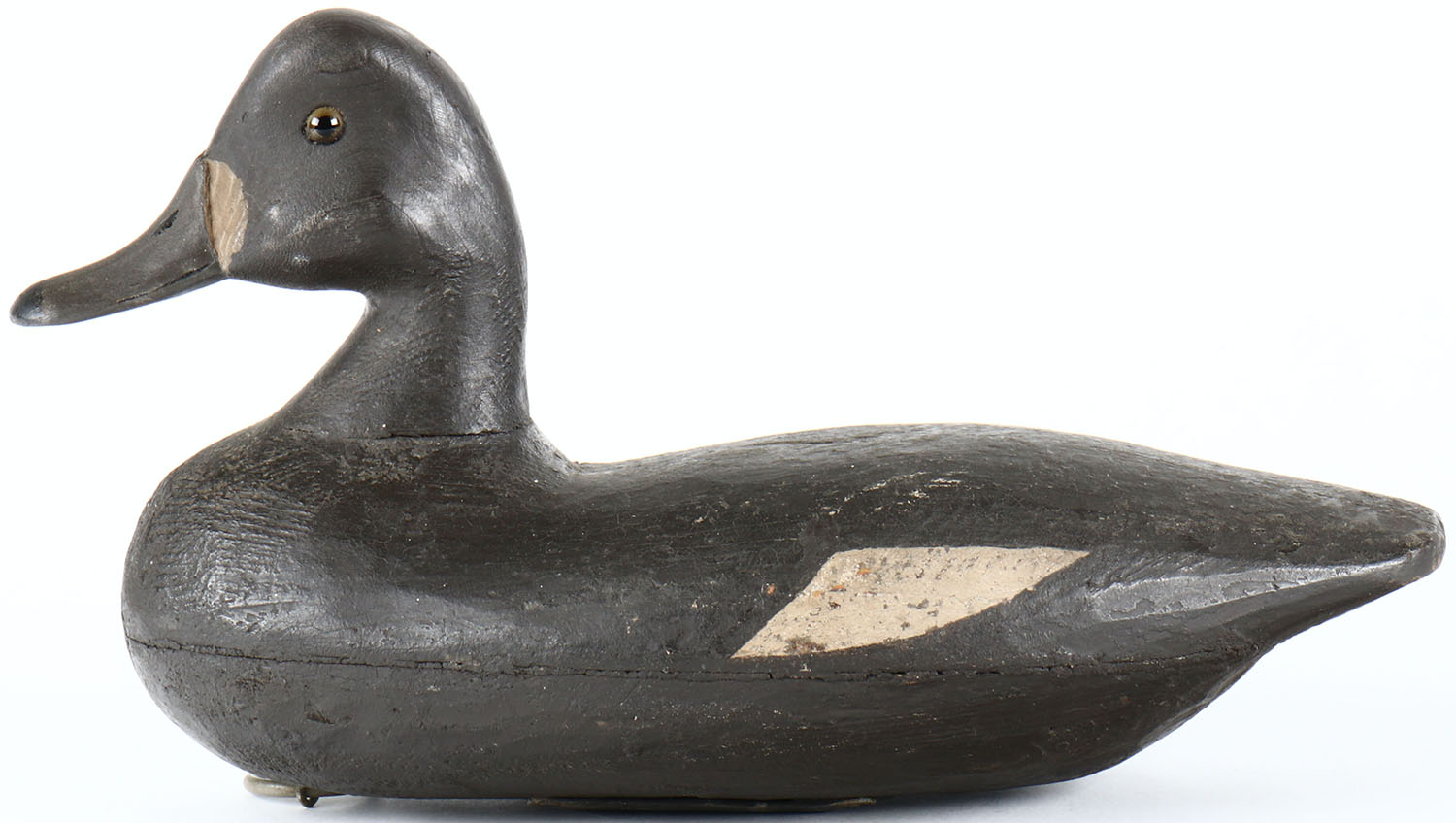 Bluebill Hen by unknown maker, glass eyes, hollow wood, original paint, structurally excellent. Grade: Excellent - Value: 60 to 100