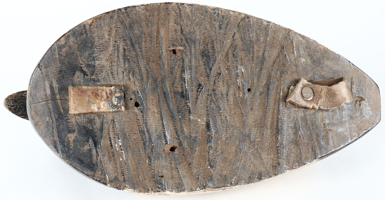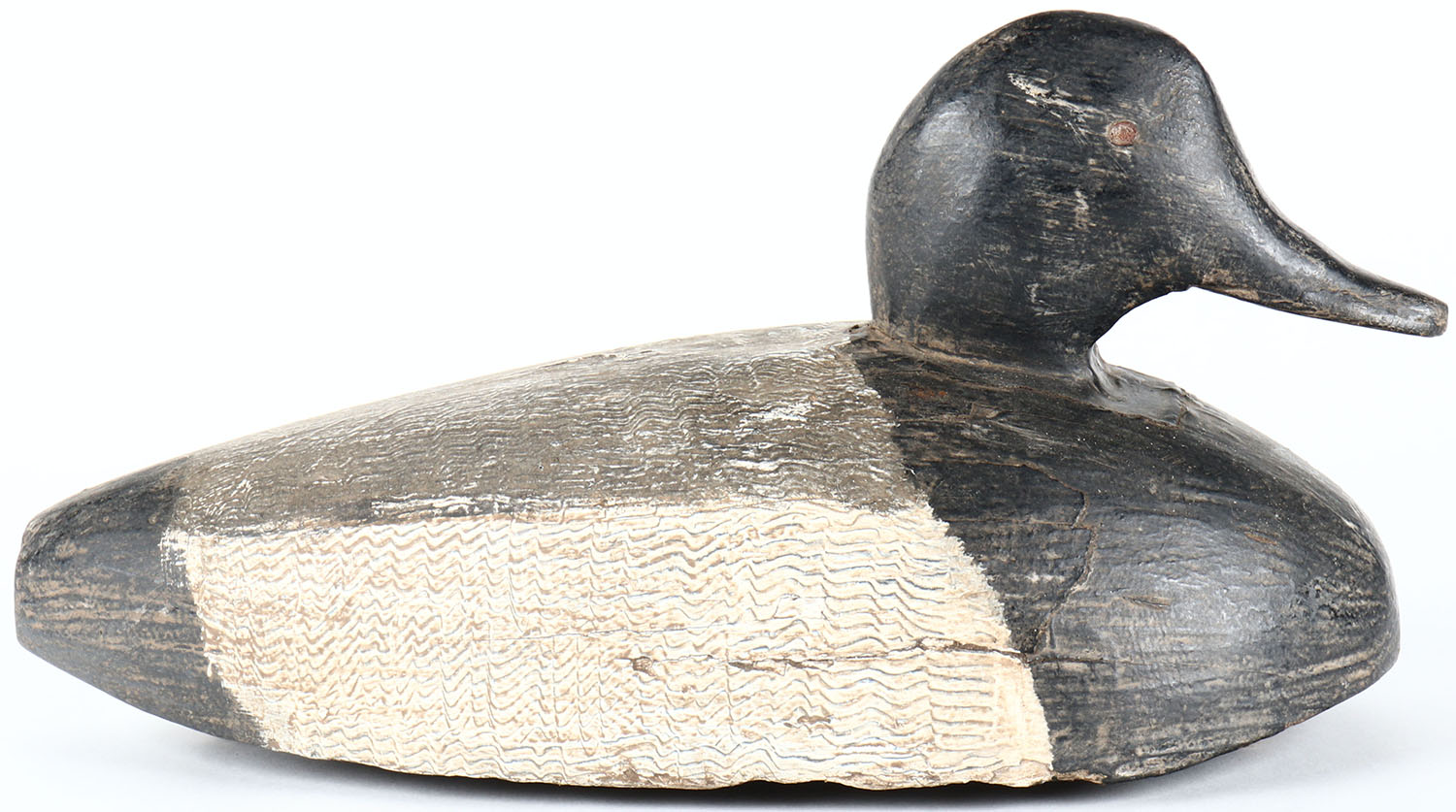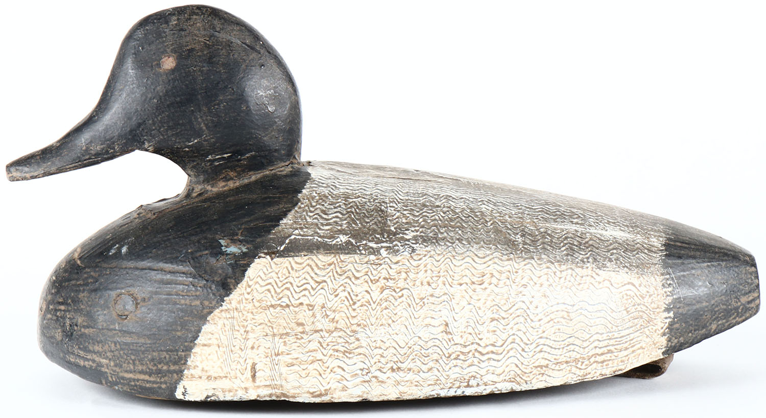 Bluebill Drake by unknown maker, tack eyes, solid wood, original paint with comb painting, structurally excellent. Grade: Excellent - Value: 30 to 60