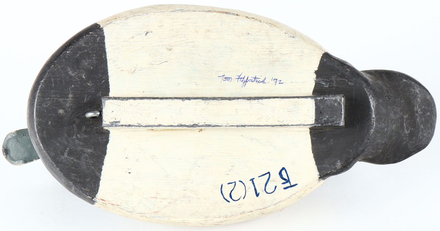 Bluebill Drake by unknown carver, glass eyes, hollow wood, original paint, structurally excellent, signed on bottom by maker. Grade: Excellent - Value: 50 to 100