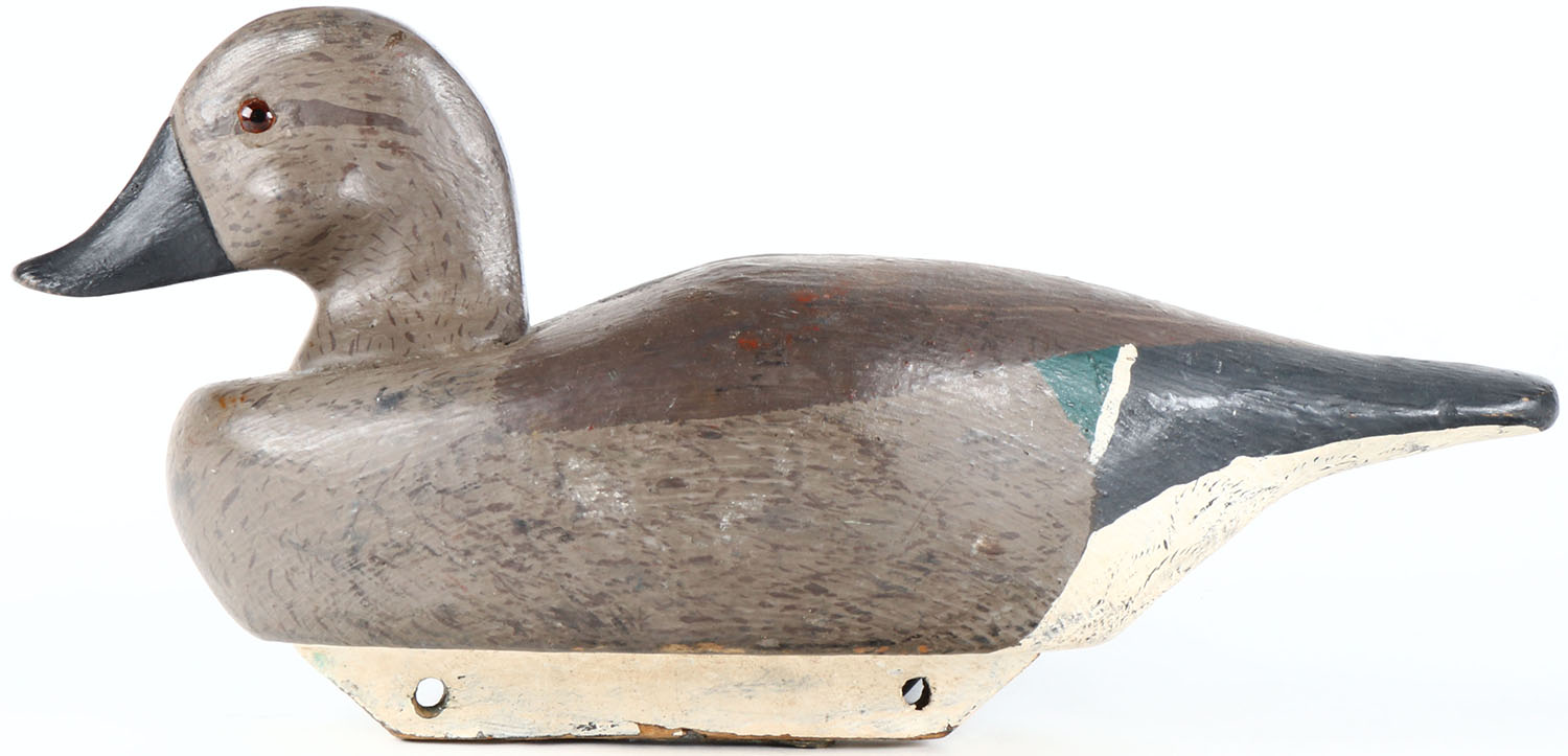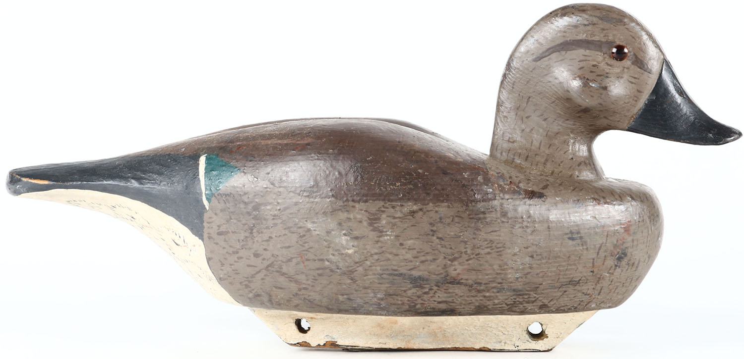 Pintail Hen by unknown maker, glass eyes, solid wood, original paint, structurally excellent. Grade: Excellent + - Value: 50 to 100
