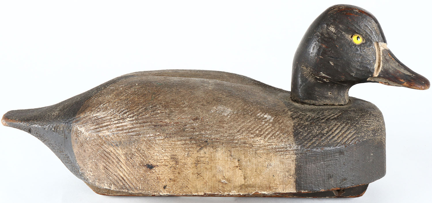Bluebill Drake by unknown maker, glass eyes, solid wood, original paint, structurally excellent. Grade: Excellent + - Value: 40 to 80
