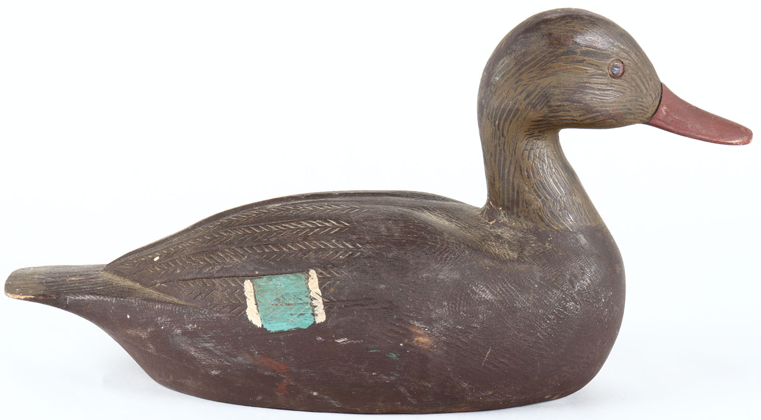 Mallard Hen by unknown Quebec maker, painted eyes, hollow wood, original paint, structurally excellent. Grade: Excellent - Value: 60 to 100