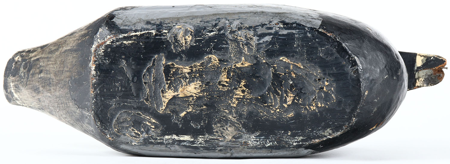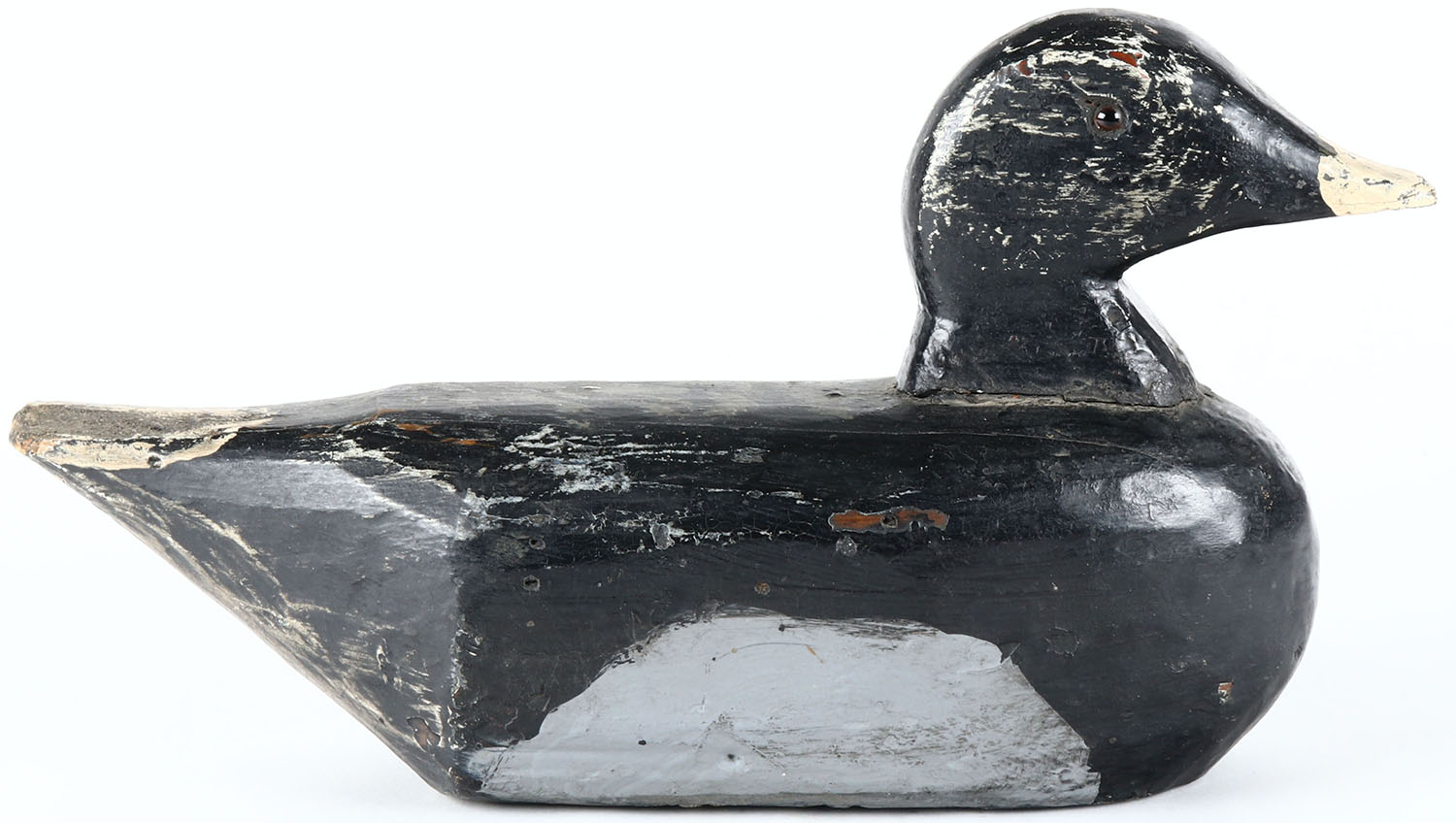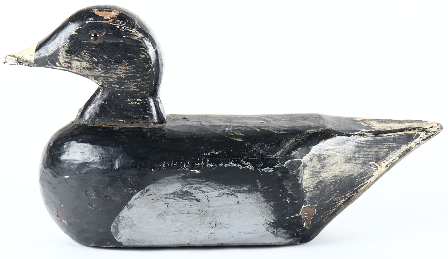 Bluebill Drake by unknown Oregon fence-post maker, painted eyes, solid wood, old hunter working repaint, structurally excellent. Grade: Very Good - Value: 40 to 80