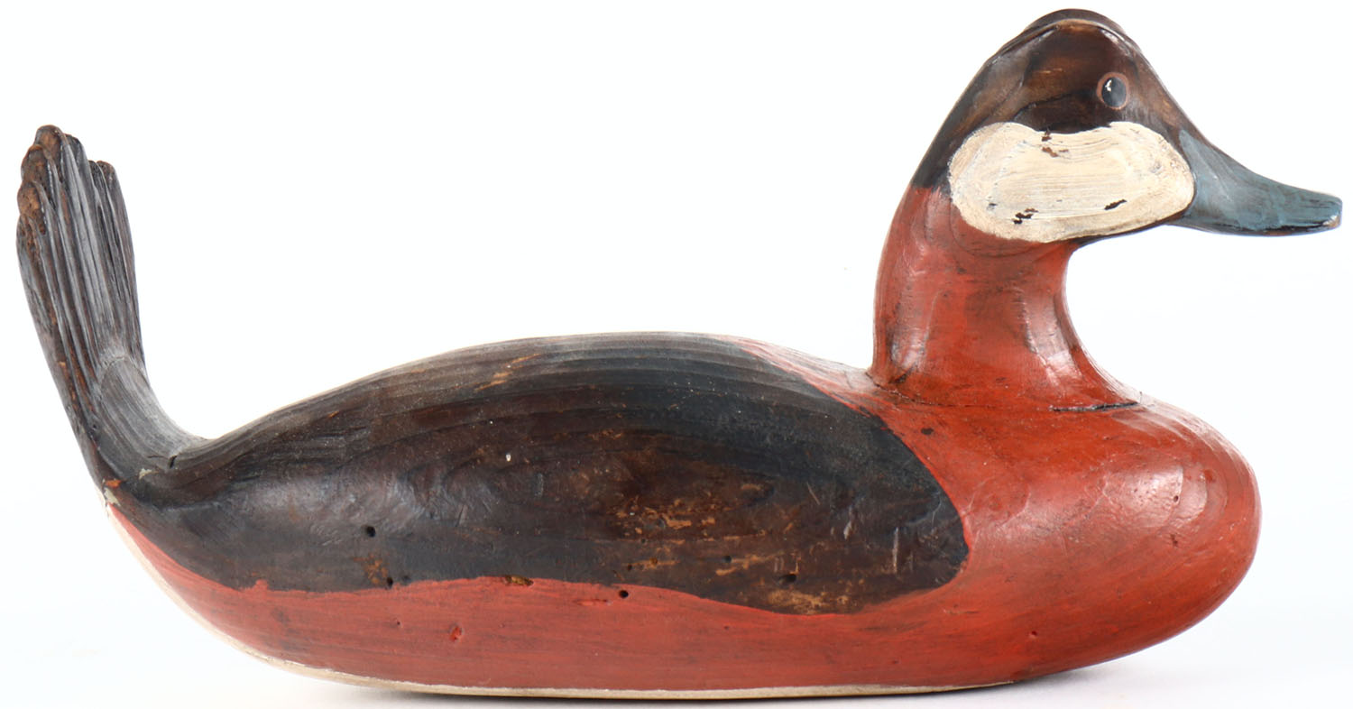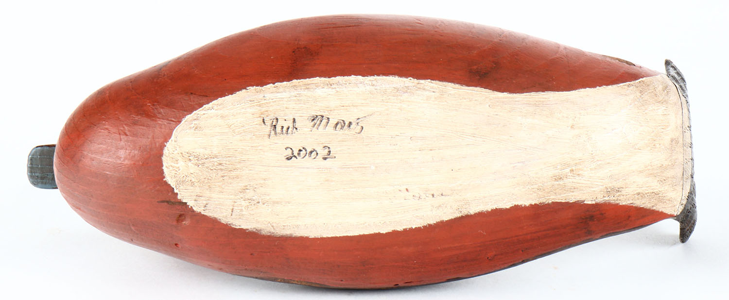 Ruddy Duck Drake by Rick Moes, painted eyes, solid wood, original paint, structurally excellent, signed on bottom. Grade: Excellent ++ - Value: 30 to 60