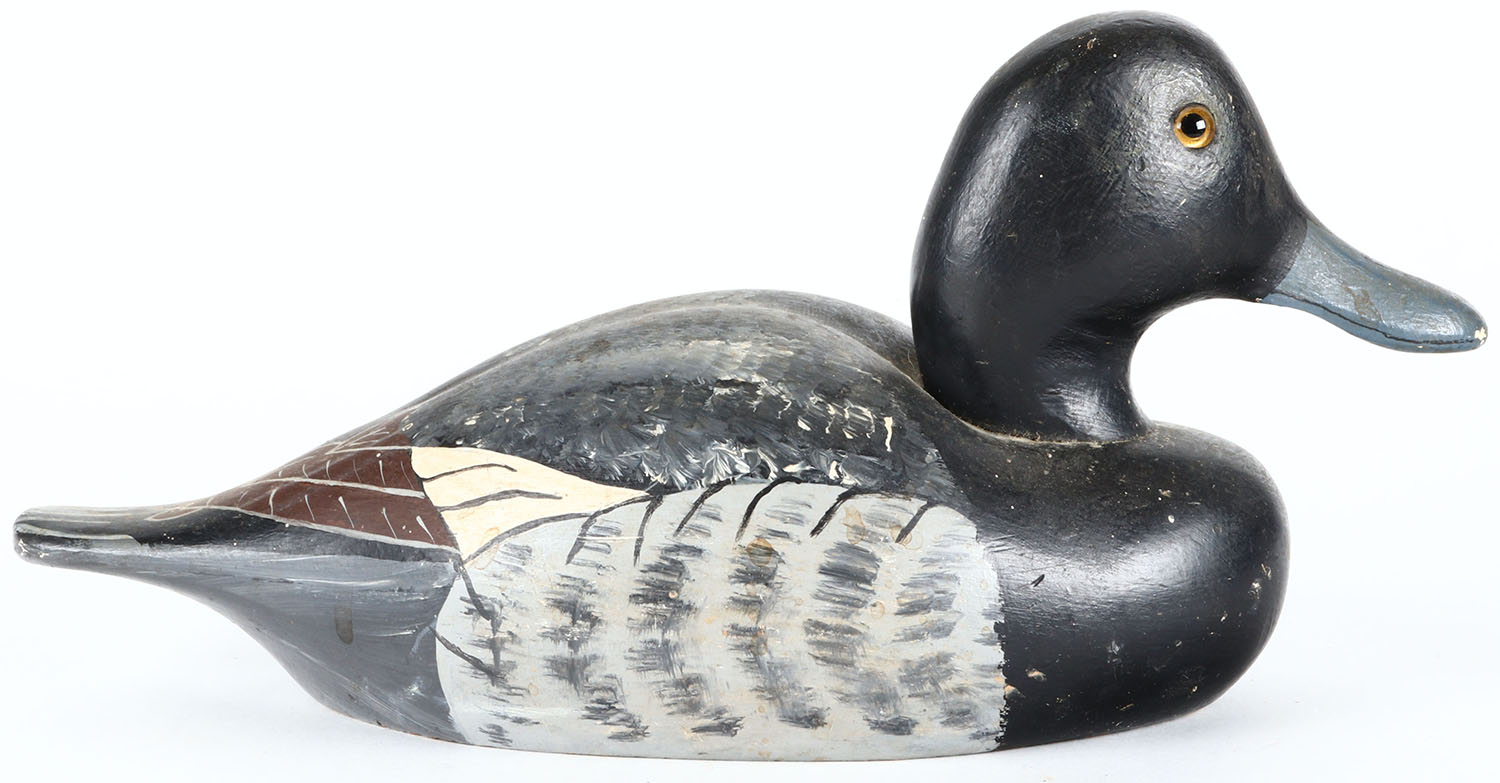 Bluebill Drake by unknown maker, glass eyes, solid wood, original paint, structurally excellent. Grade: Excellent ++ - Value: 20 to 40
