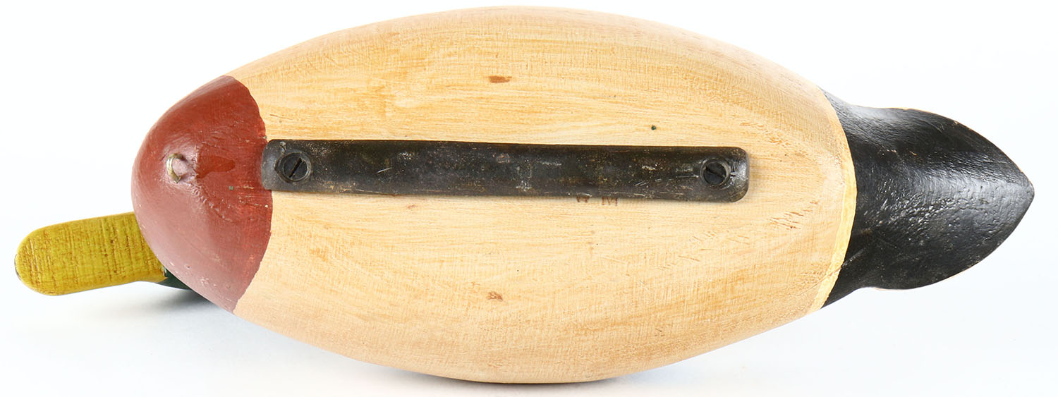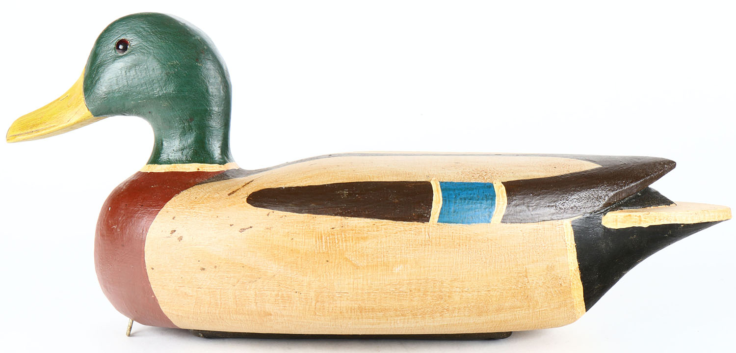 Mallard Drake by unknown maker, glass eyes, solid wood, original paint, structurally excellent. Grade: Excellent - Value: 30 to 60