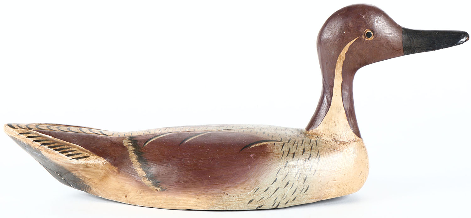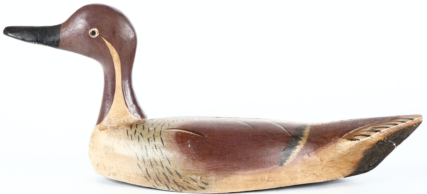 Pintail Drake by unknown Spanish maker, glass eyes, solid wood, original paint, structurally excellent. Grade: Excellent - Value: 40 to 80
