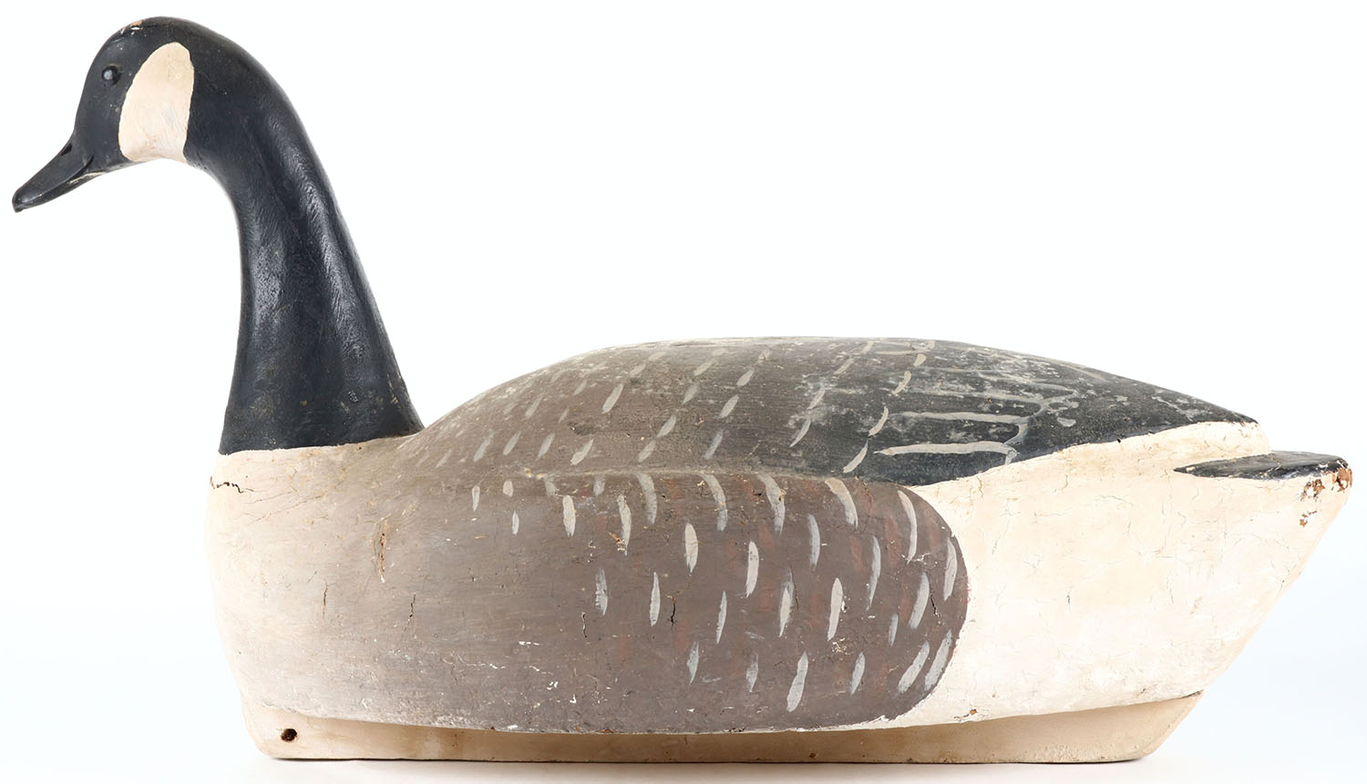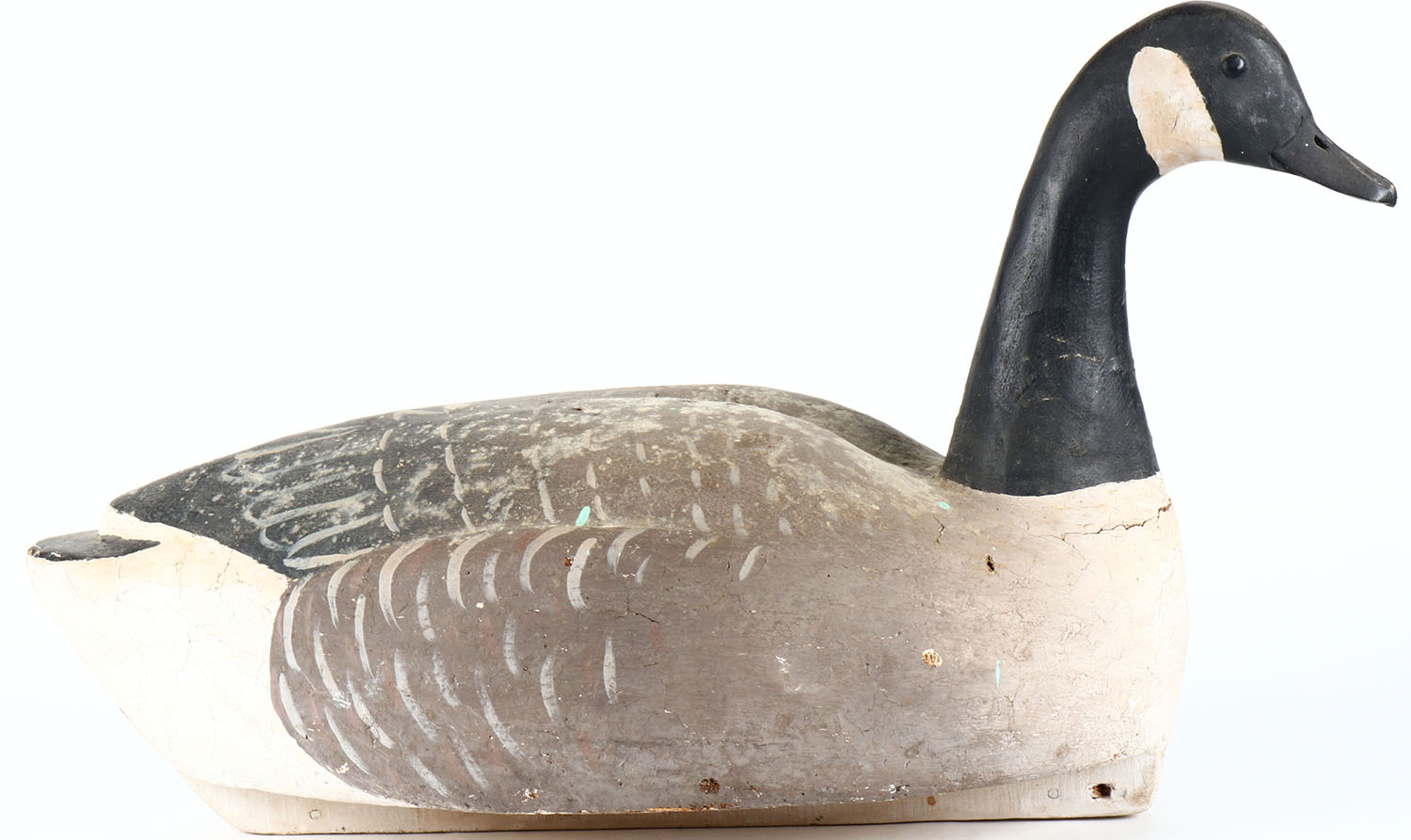 Canada Goose by unknown maker, tack eyes, hollow wood, original paint, has age cracks under neck. Grade: Very Good + - Value: 50 to 100