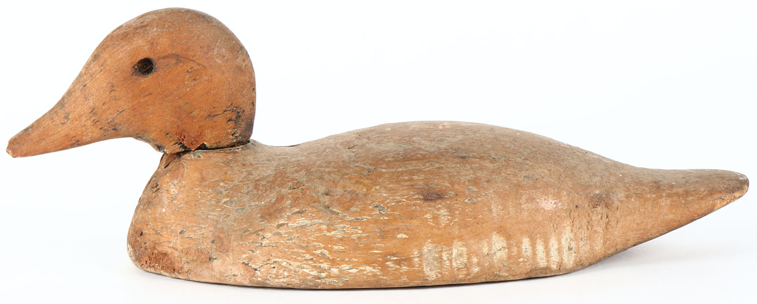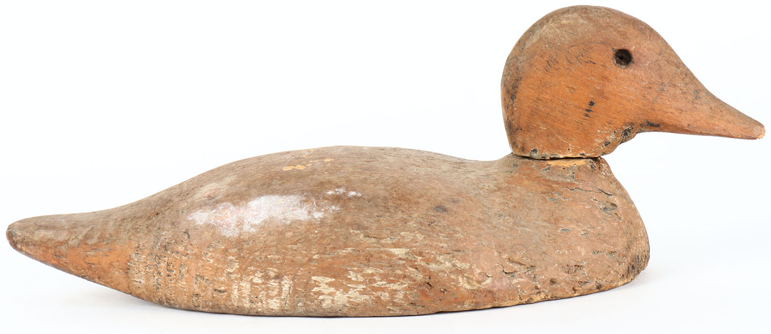 Mallard by a Pascagoula, MS, factory, glass eyes missing, solid wood, remnants of original paint, head is loose. Grade: Very Good - Value: 10 to 20