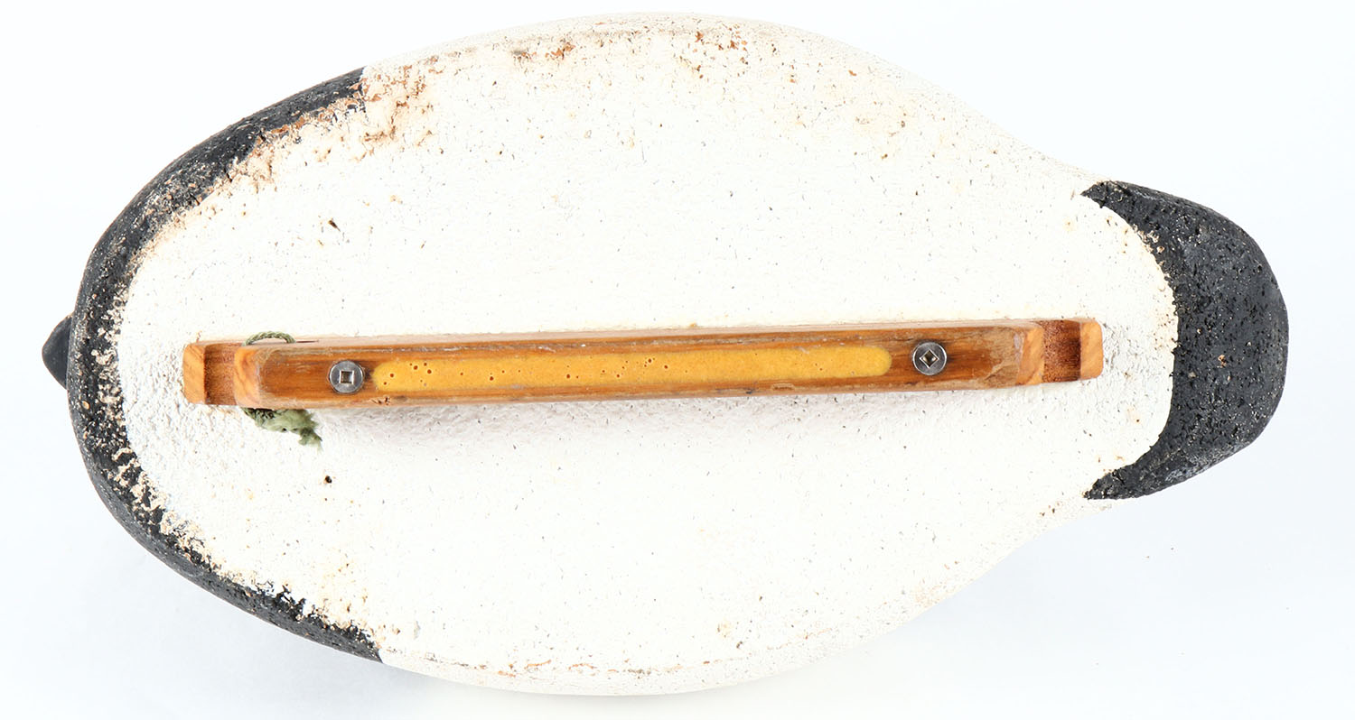 Ring-Neck Drake by Chris Brooks, painted eyes, solid cork body on wood stand, original paint, structurally excellent. Grade: Excellent - Value: 30 to 60