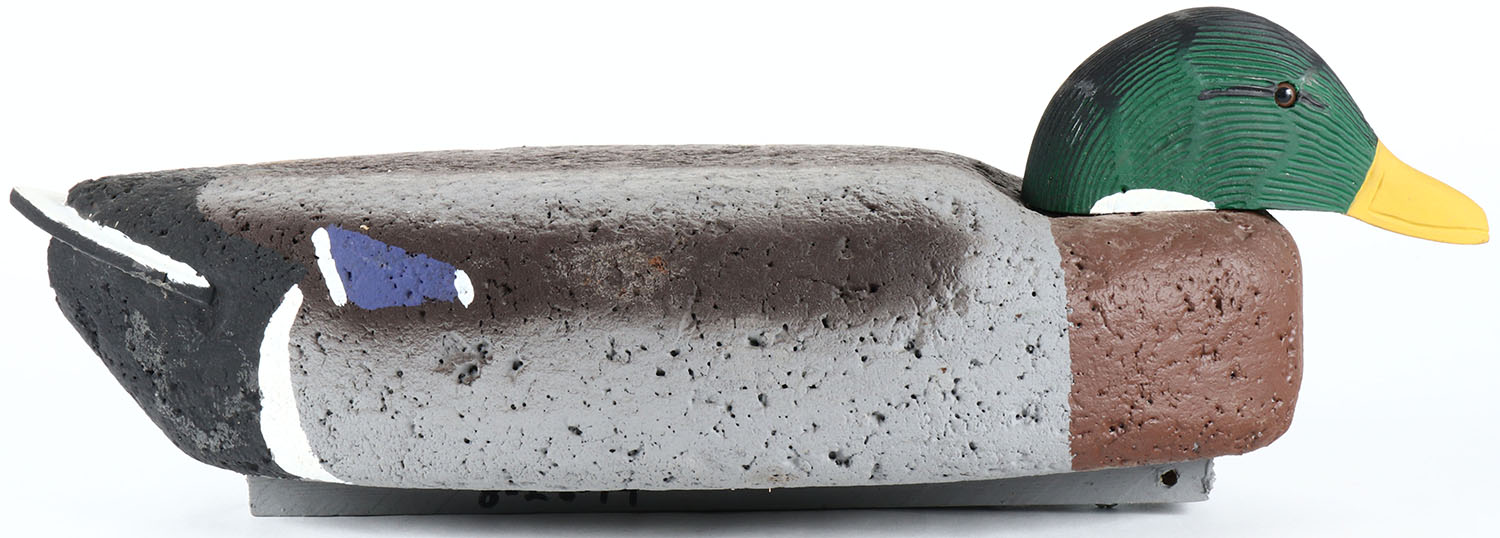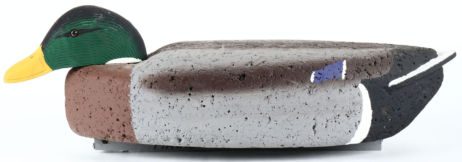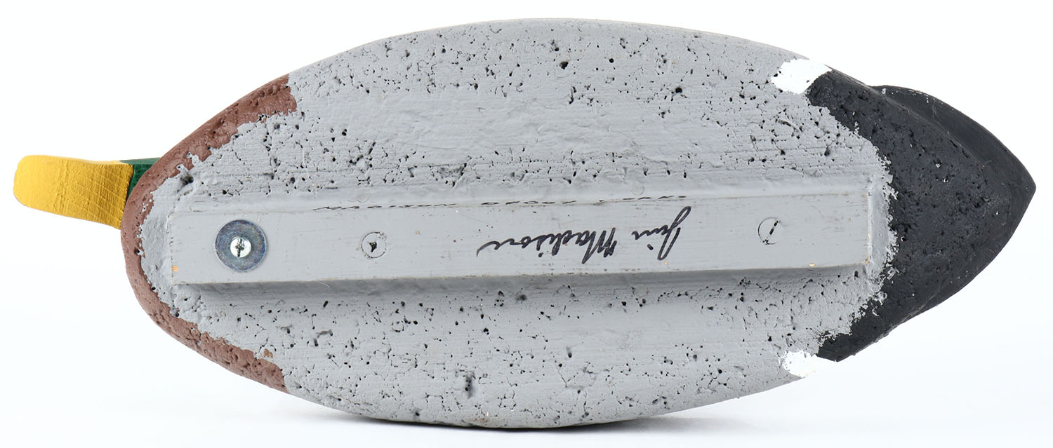 Mallard Drake by Madison Decoy Works, glass eyes, solid cork body, original paint, structurally excellent, signed on bottom. Grade: Excellent + - Value: 20 to 40