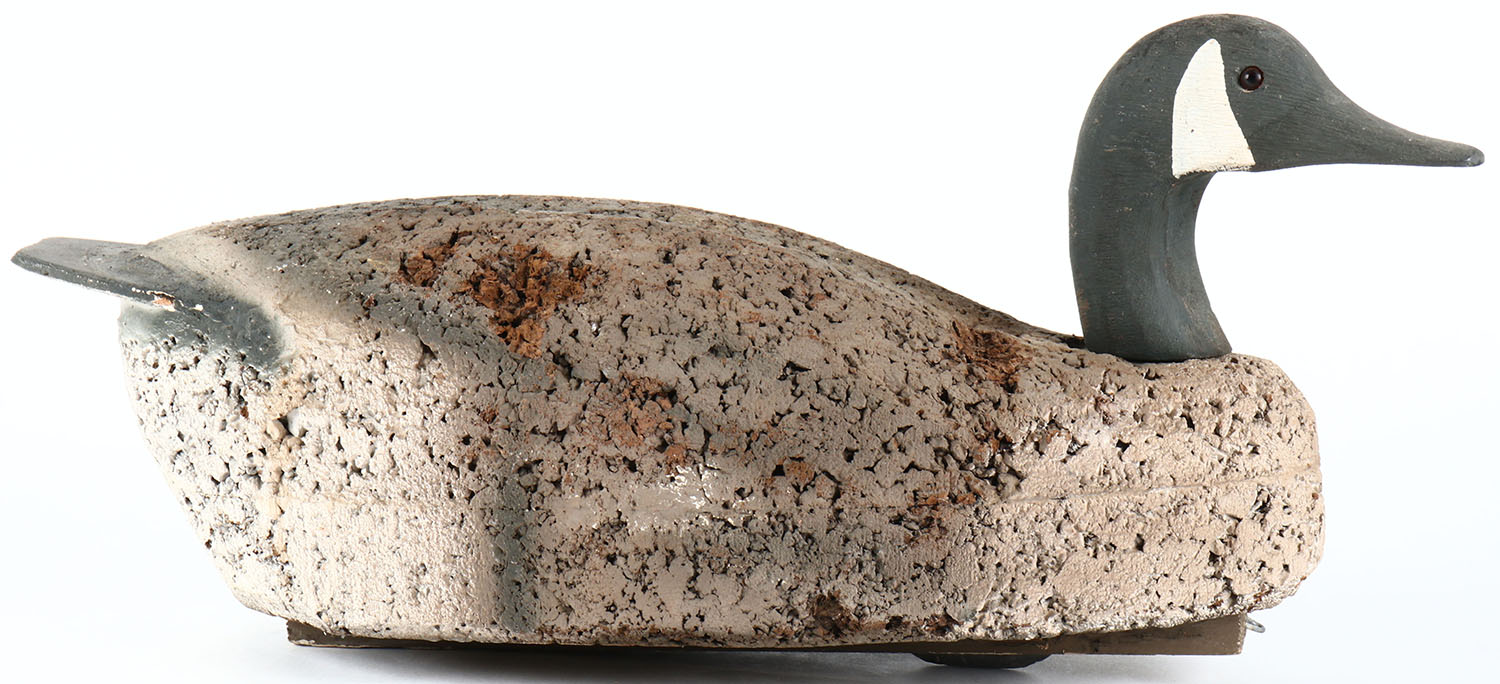 Canada Goose by Tuveson Manufacturing, Minnesota, glass eyes, solid cork body, original paint, head comes completely off. Grade: Very Good + - Value: 30 to 60