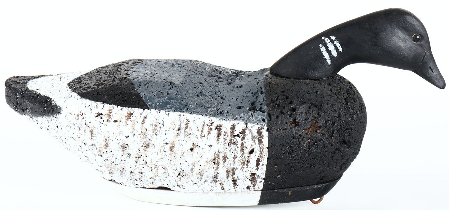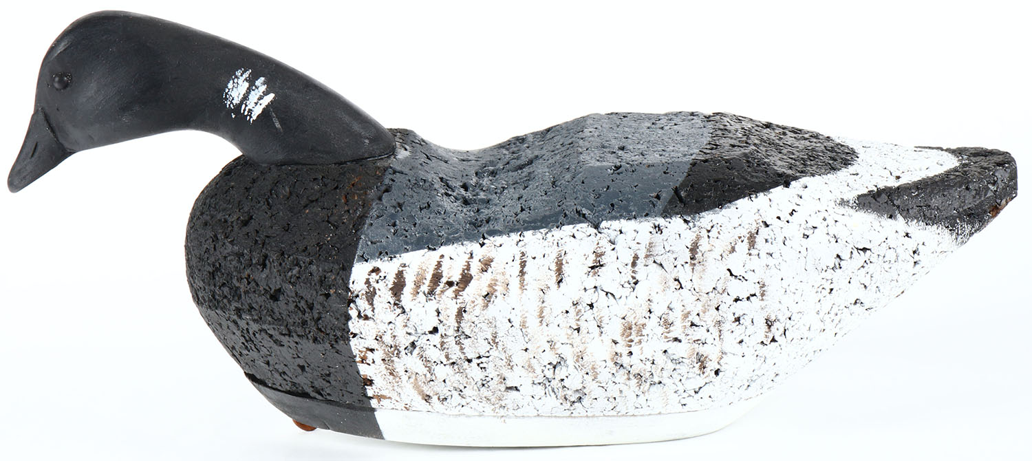 Black Brant by unknown maker, tack eyes, solid cork body on wood base, original paint, structurally excellent. Grade: Excellent ++ - Value: 20 to 40