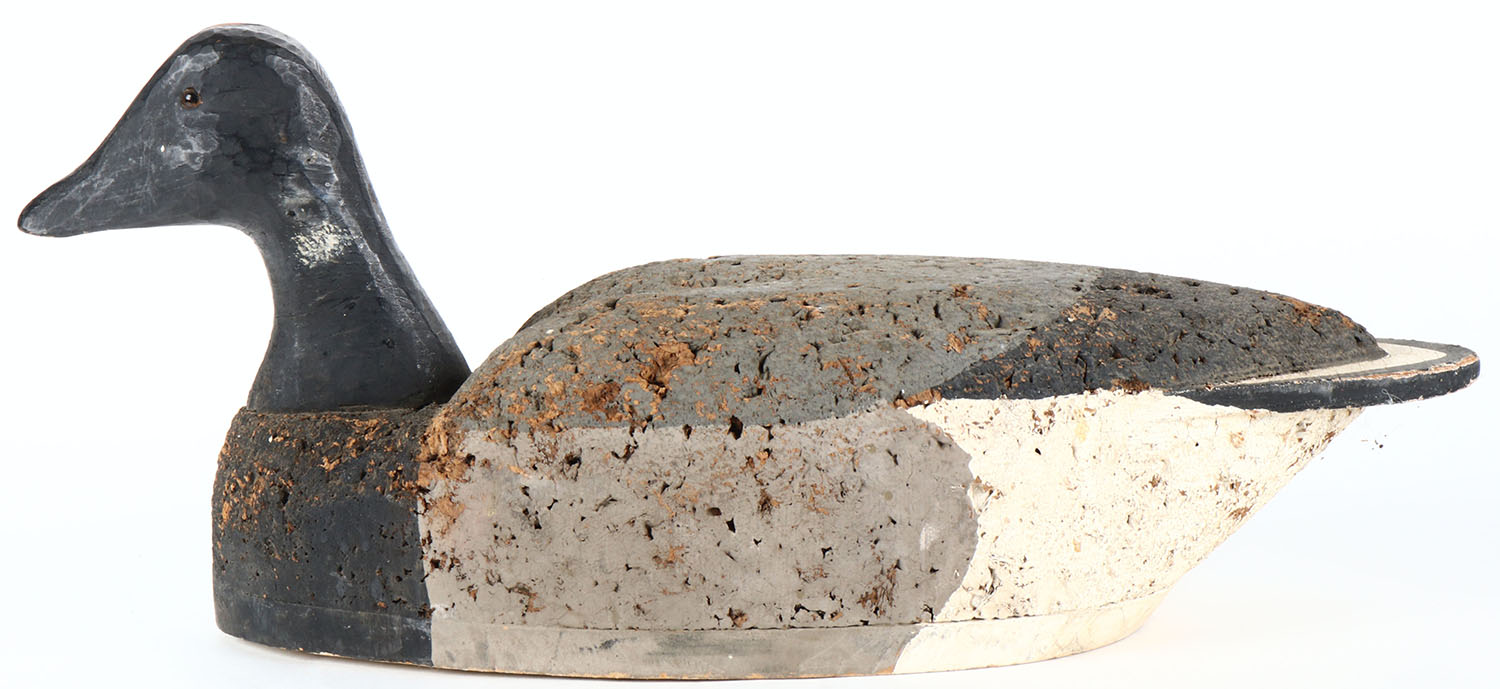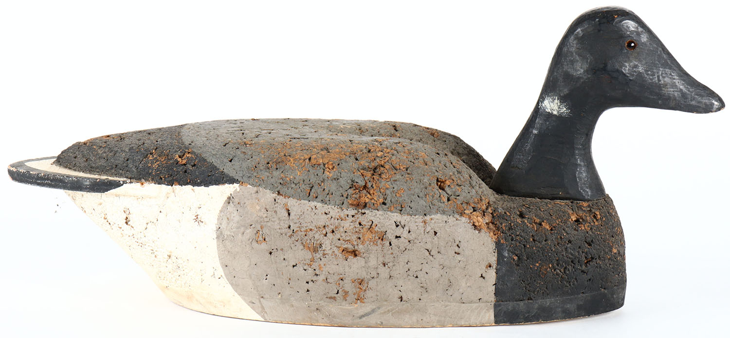 Black Brant by unknown maker, glass eyes, solid cork body, original paint, structurally excellent. Grade: Excellent - Value: 40 to 80