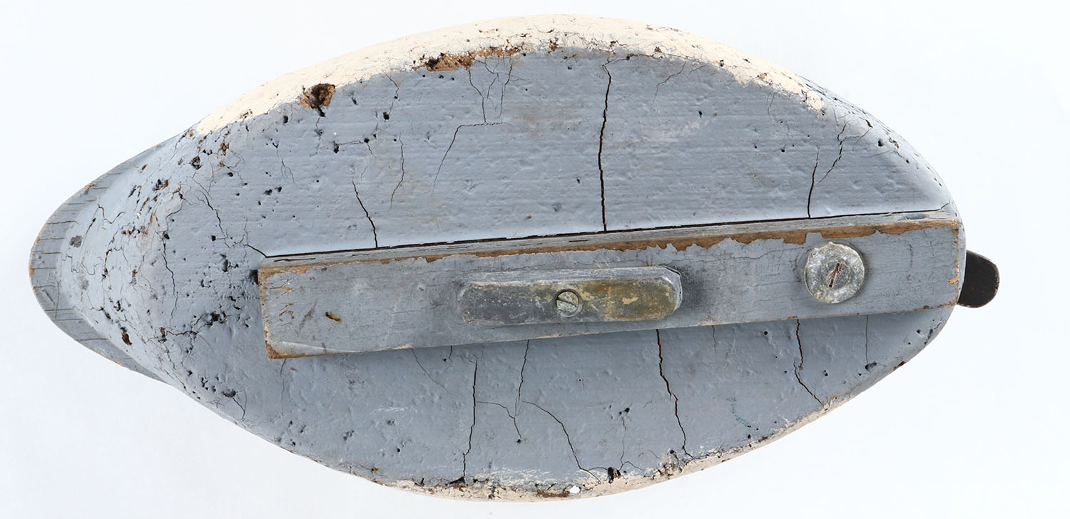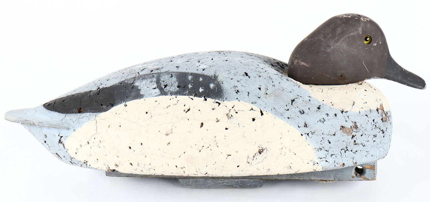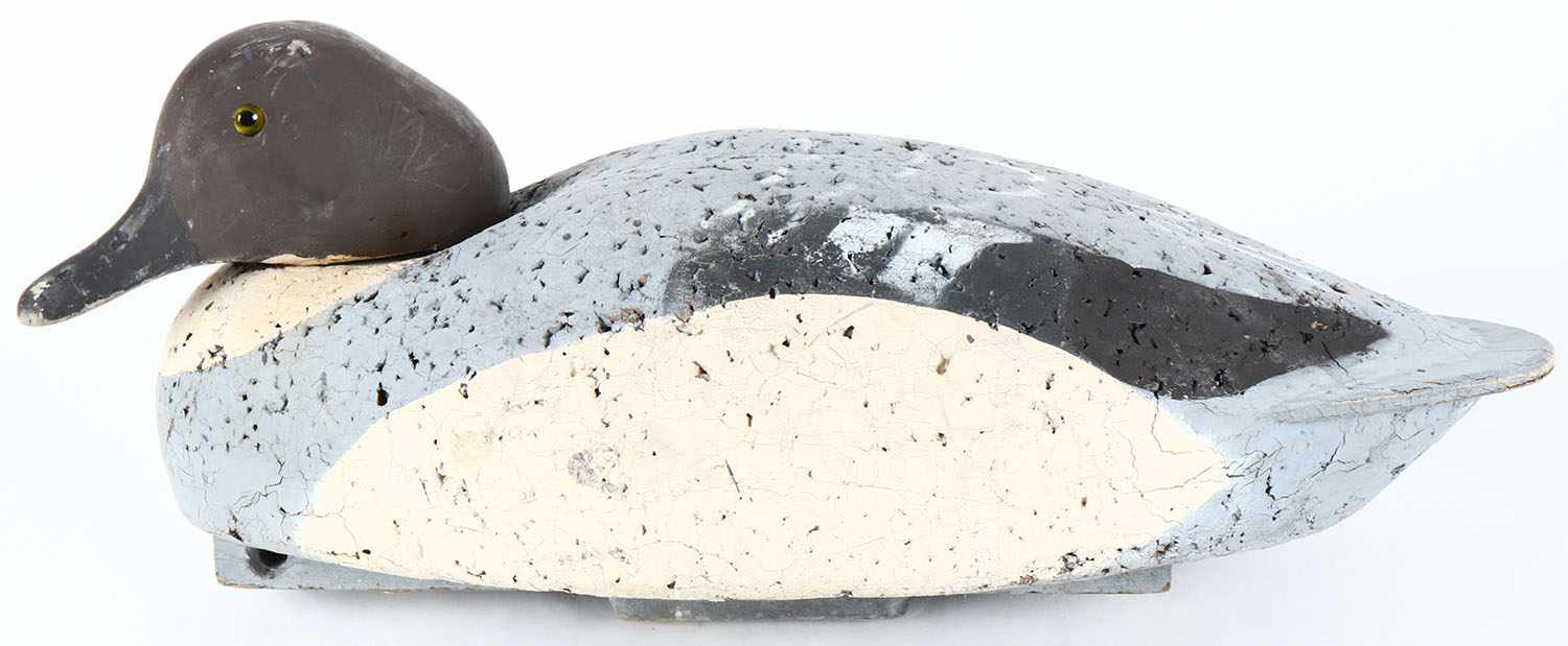 Goldeneye Hen by L.L. Bean, Maine, glass eyes, solid cork body, original paint, has age cracks on bottom. Grade: Very Good + - Value: 40 to 80
