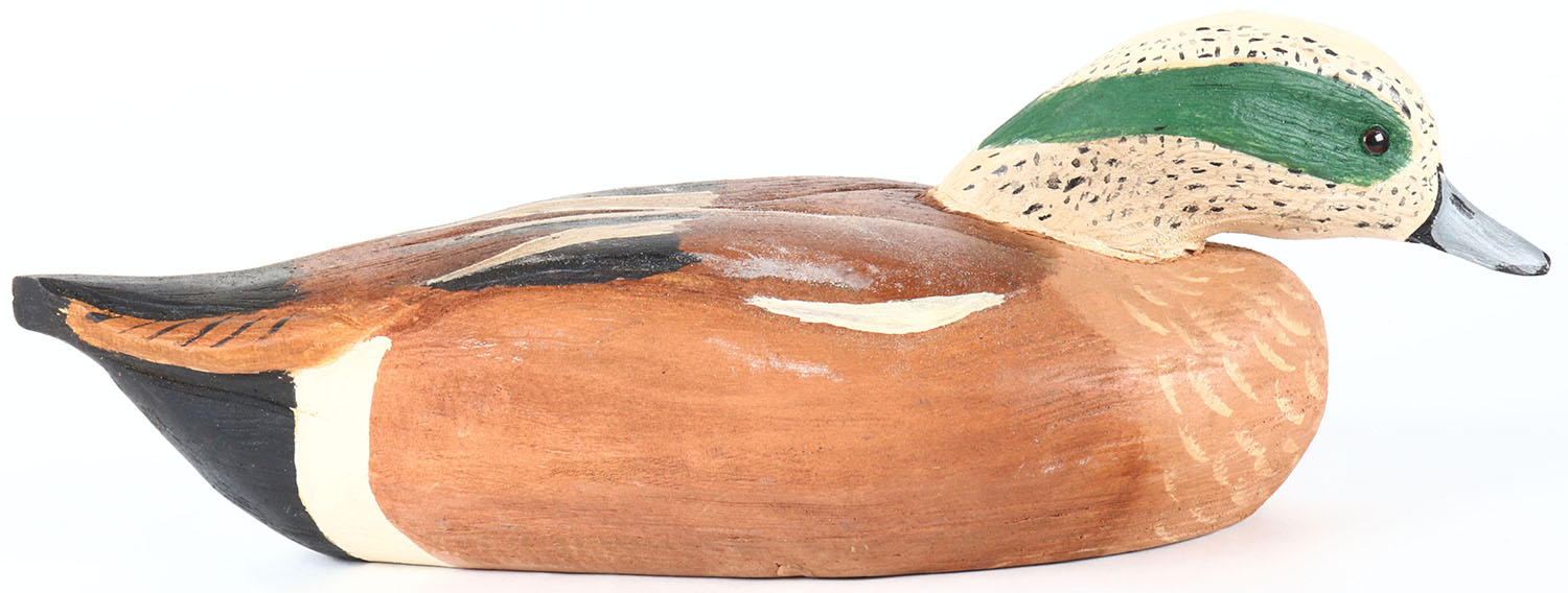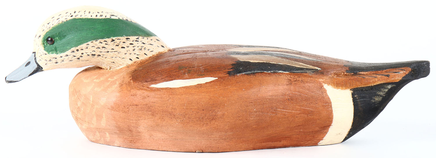 Widgeon Drake by Dennis Finden, MN, glass eyes, hollow wood, original paint, structurally excellent, signed on bottom by maker. Grade: Excellent - Value: 30 to 60