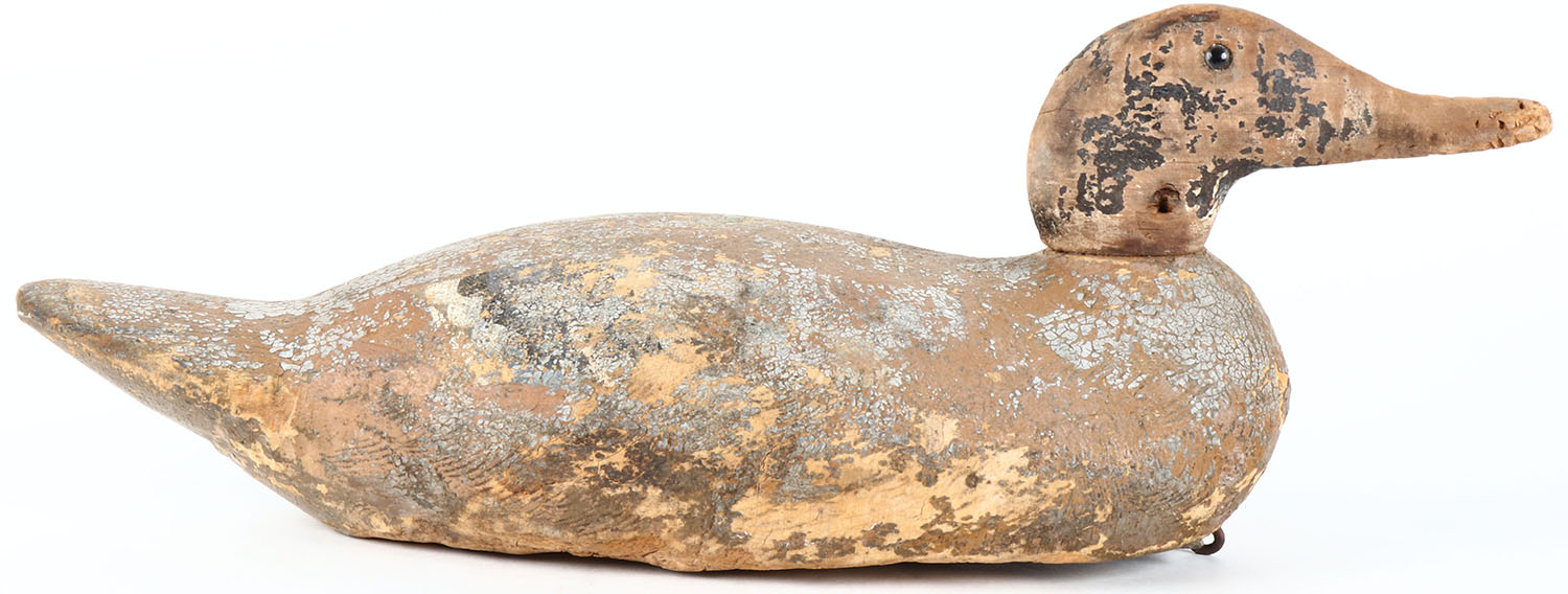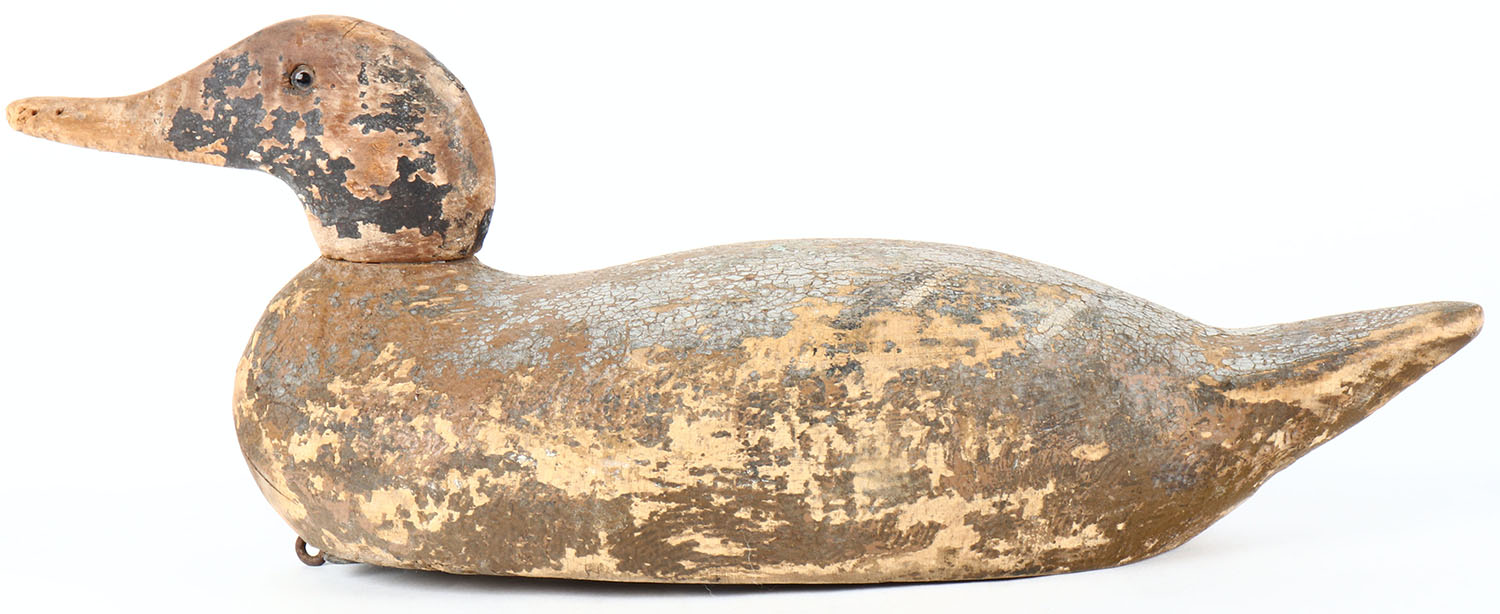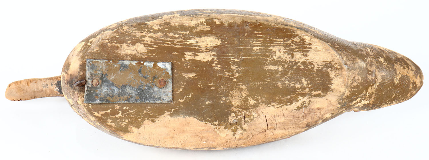 Pintail Drake by Benz Decoy Co., Missouri, glass eyes, solid wood, combination of well-worn original and old hunter strengthening. Grade: Very Good - Value: 20 to 40