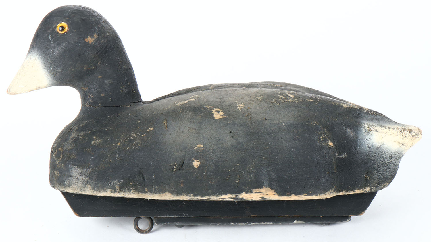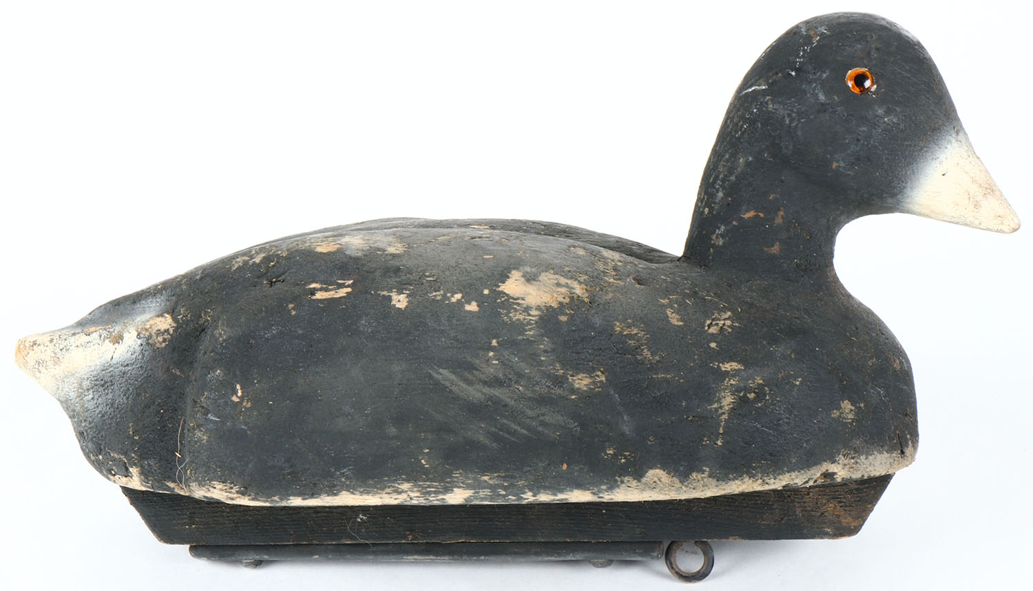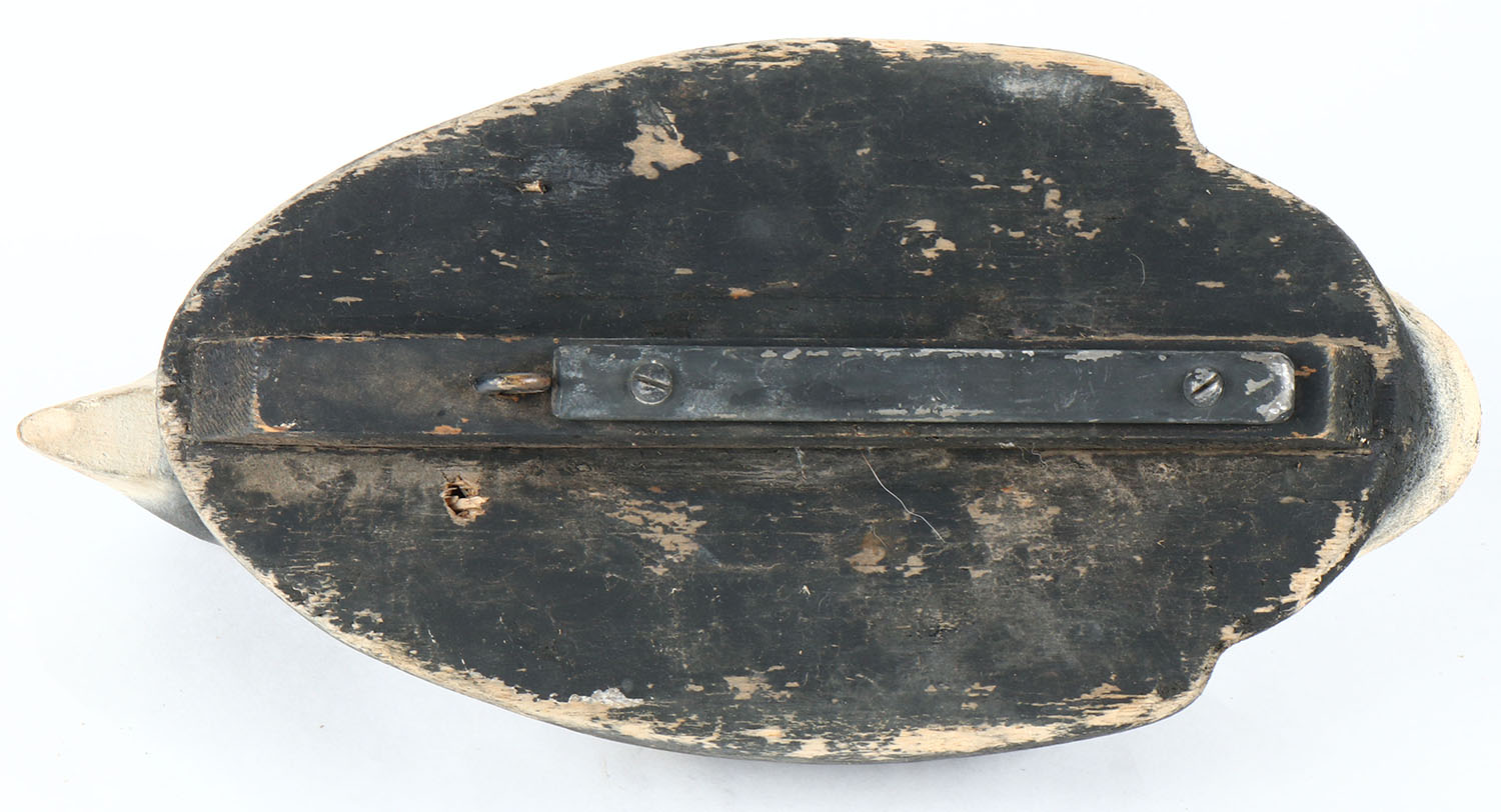 Coot by Herters, Minnesota, glass eyes, solid balsa wood, combination of original paint and working touch-up, neck has age cracks. Grade: Very Good - Value: 20 to 40